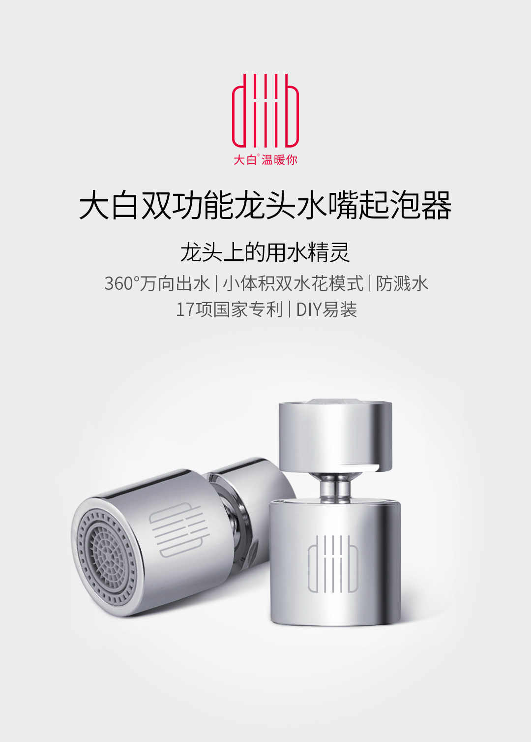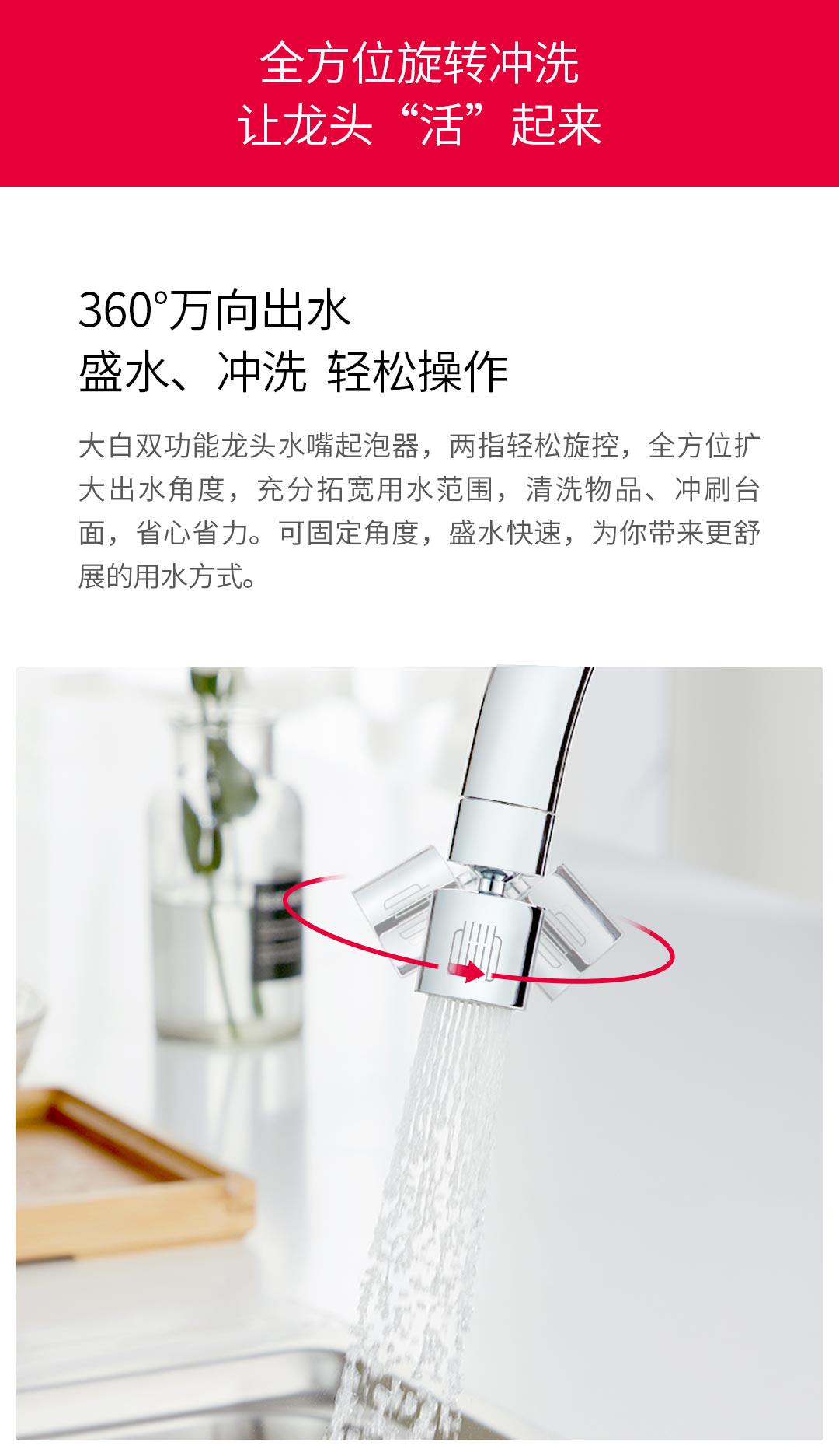 Xiaomi Youpin Daibai Double Function Большая вода Tumen Bubbler 360 ° Wanli Water Head Kitchen Filter