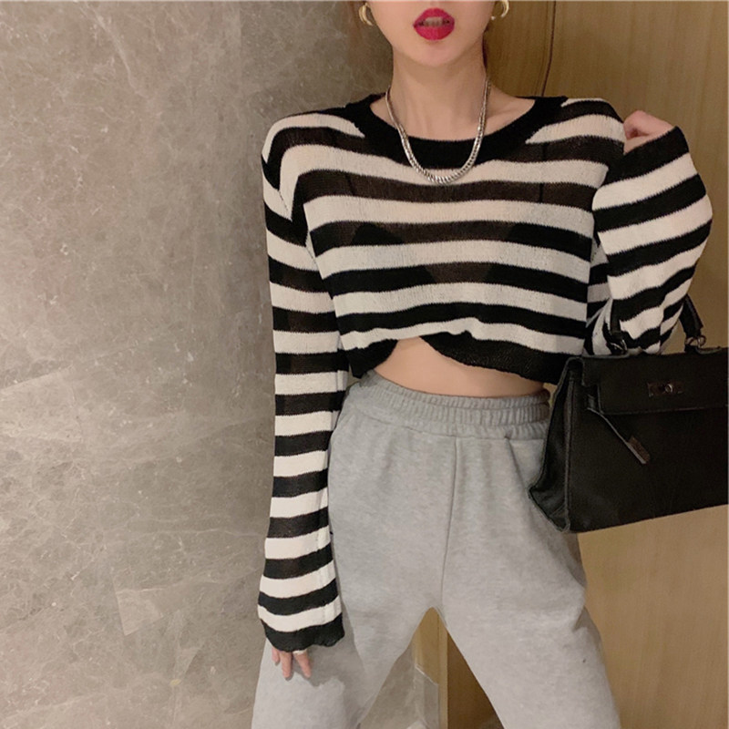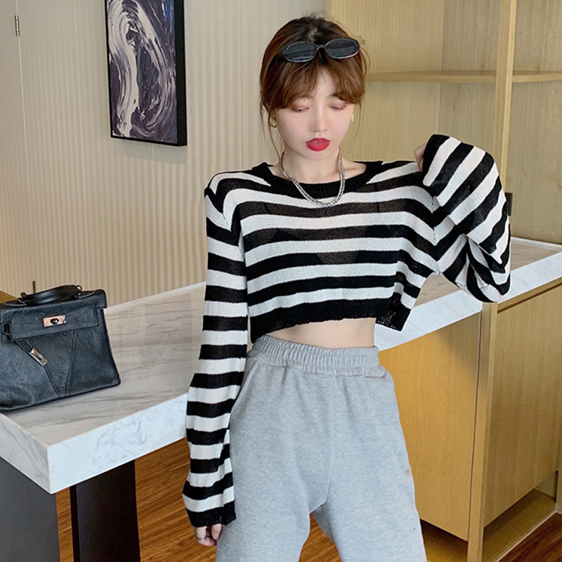 Тонкий шелковый трикотажный летний осенний свитер, короткая футболка, коллекция 2021, высокая талия