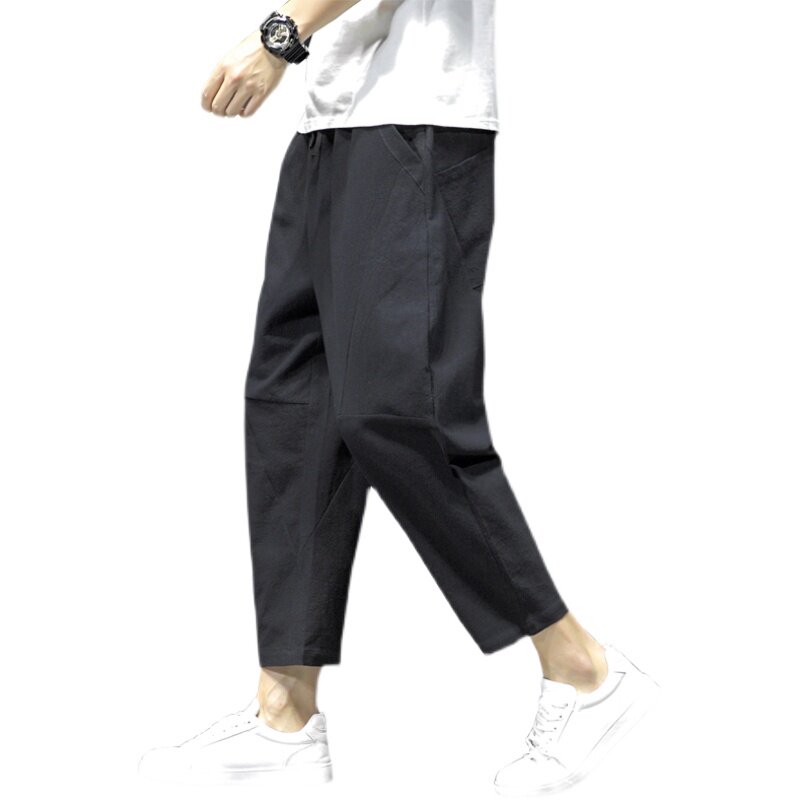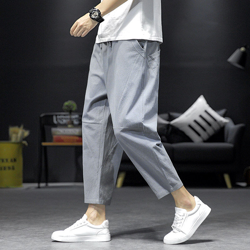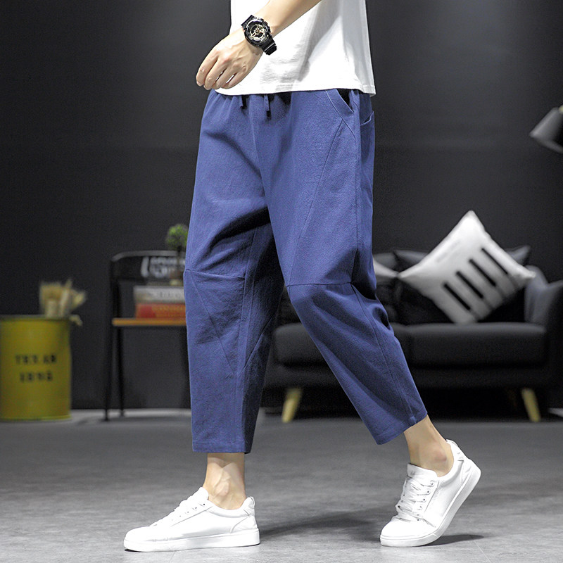 Летние тонкие однотонные штаны для отдыха, китайский стиль, свободный прямой крой, из хлопка и льна, большой размер