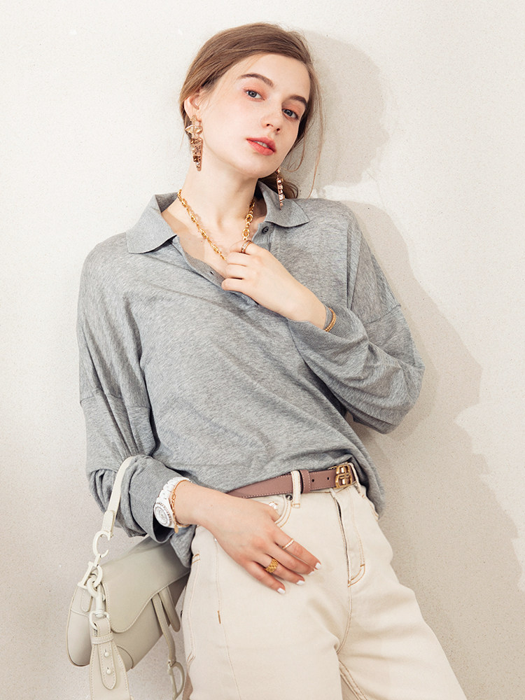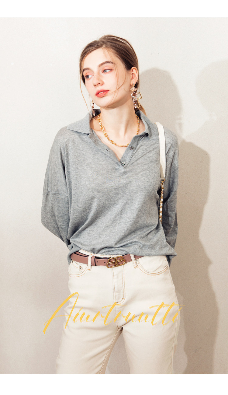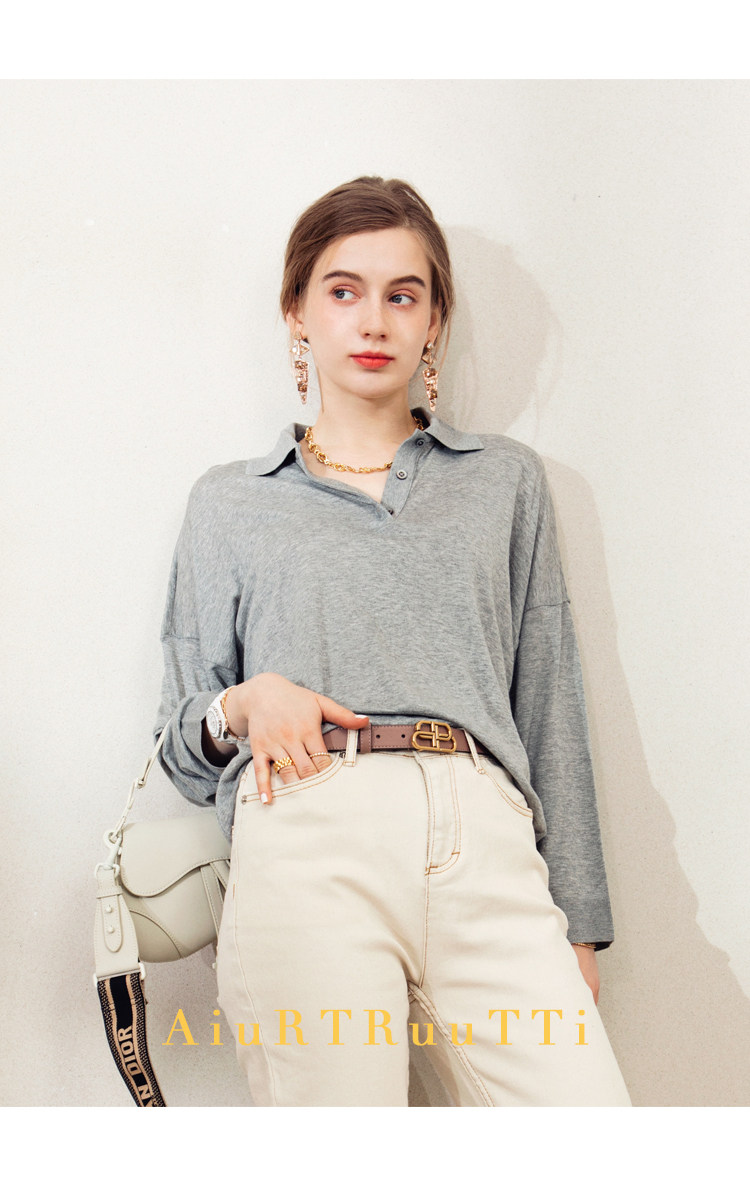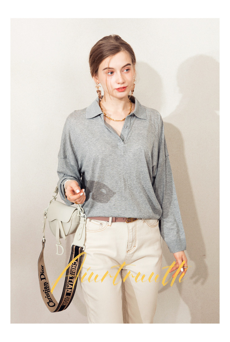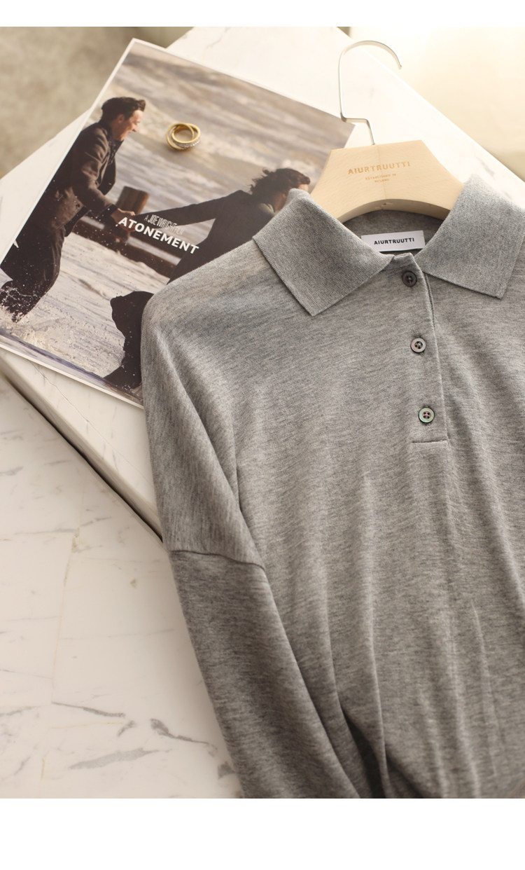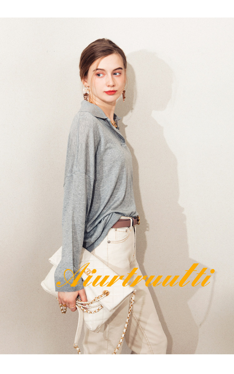 Обратите внимание, у него элегантный силуэт, в нем есть ощущение линий, и в ношении он действительно выглядит стройным. Модель представляет собой оверсайз-дизайн с заниженными рукавами и вырезом, который является самым популярным типом поло за последние два года.