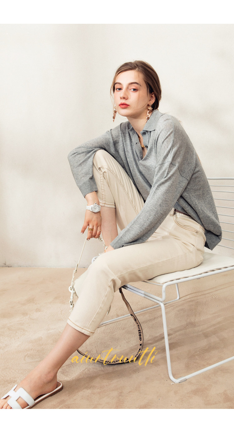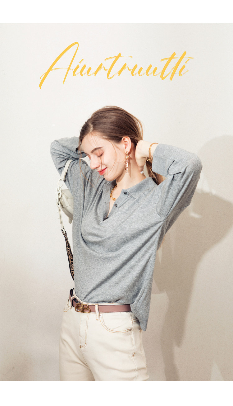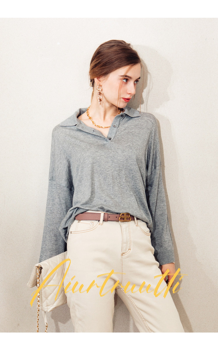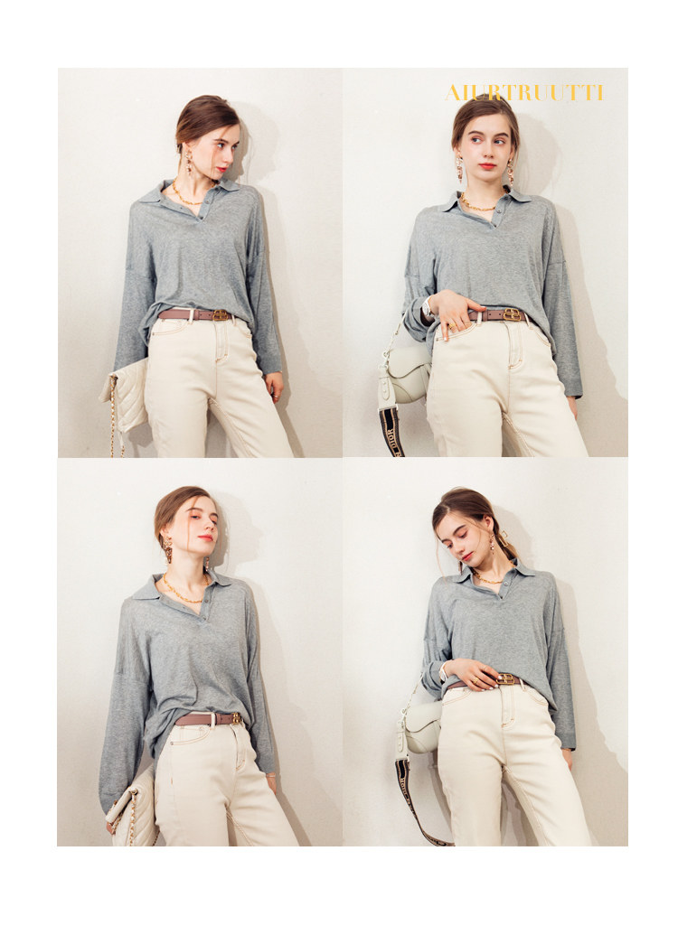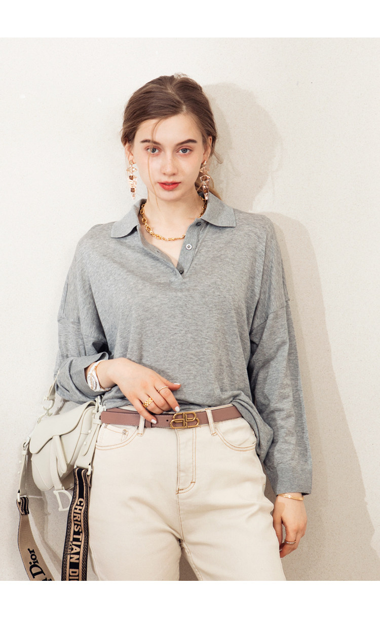 Обратите внимание, у него элегантный силуэт, в нем есть ощущение линий, и в ношении он действительно выглядит стройным. Модель представляет собой оверсайз-дизайн с заниженными рукавами и вырезом, который является самым популярным типом поло за последние два года.