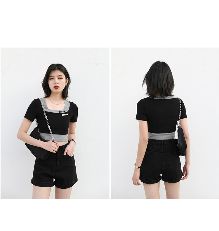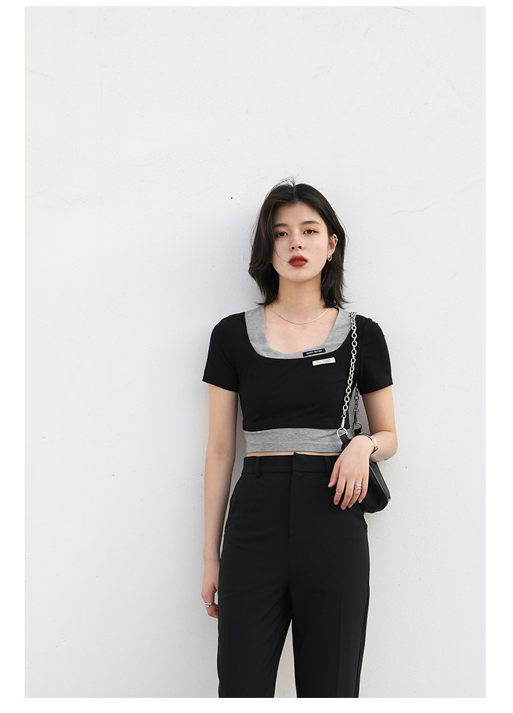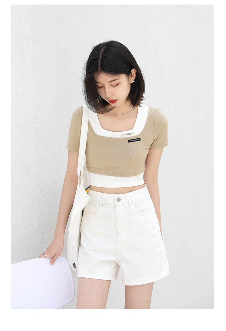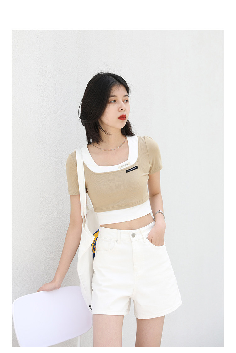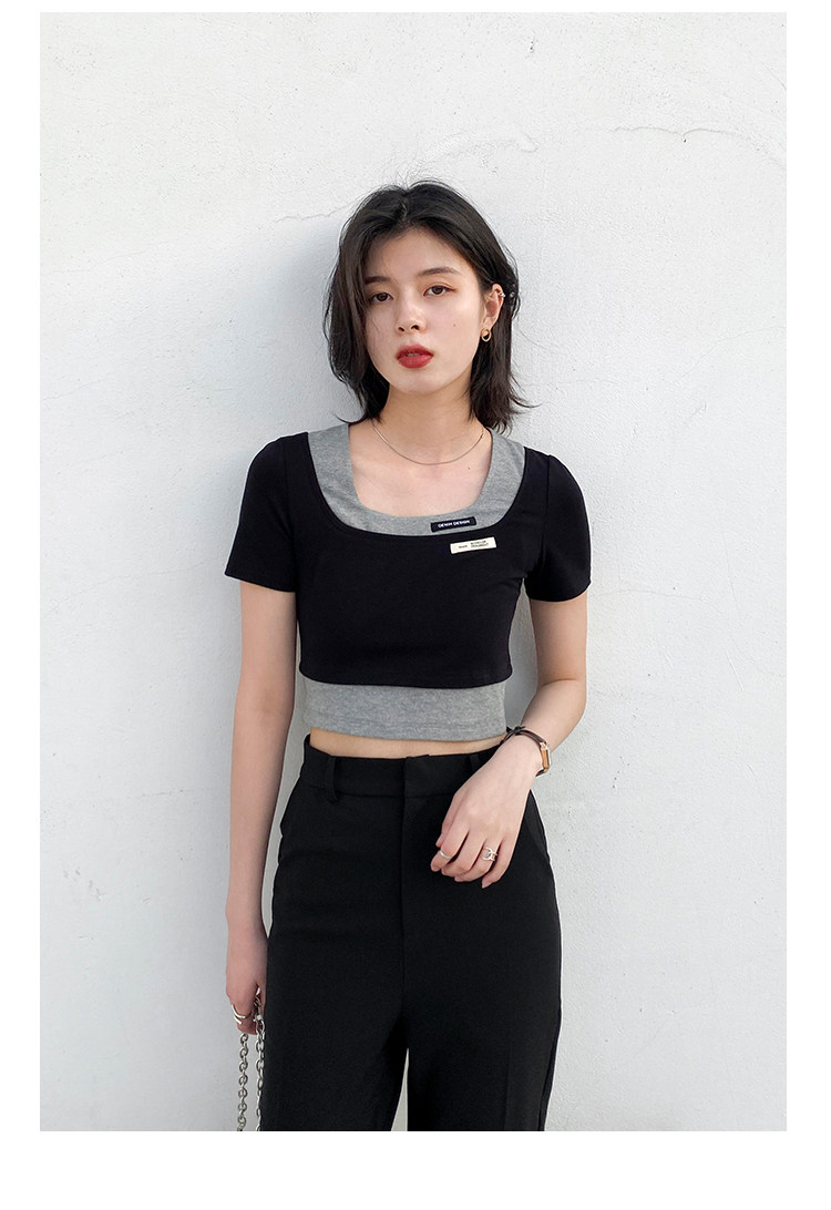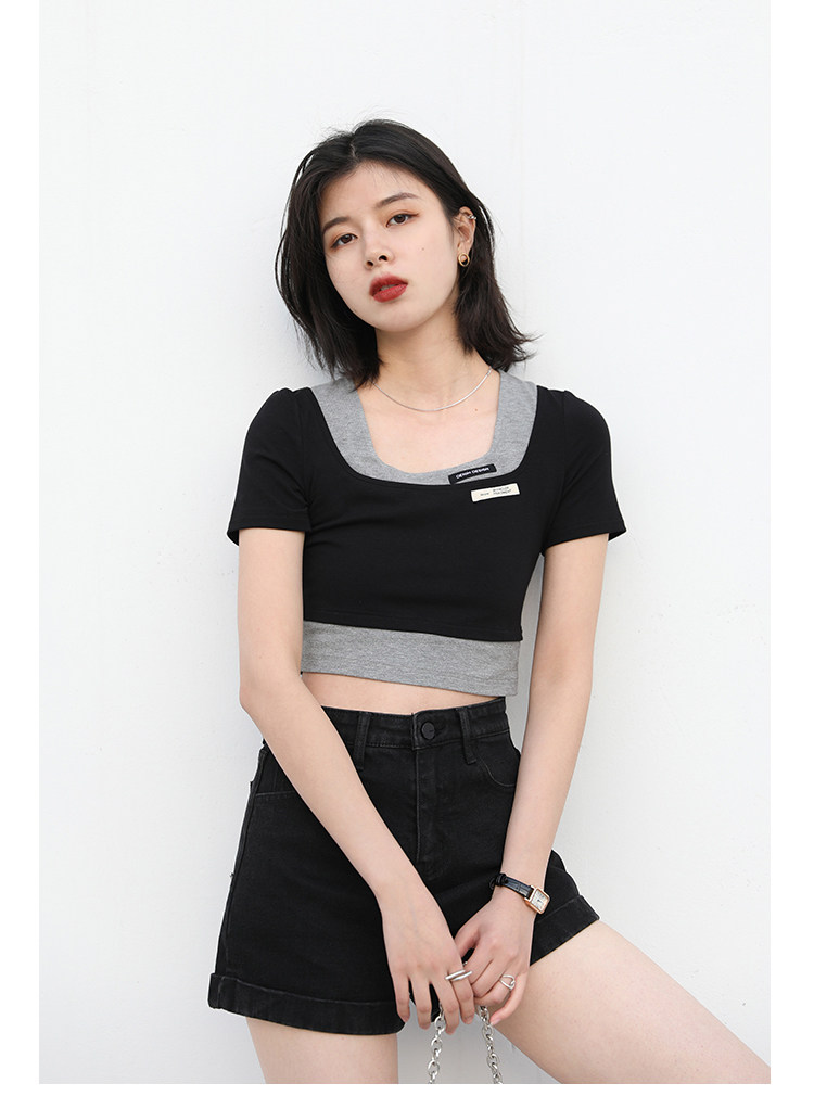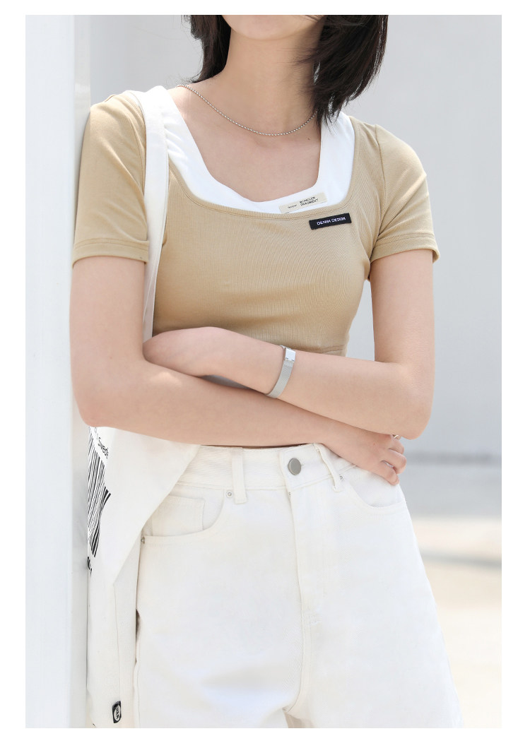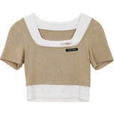 Дизайнерский комплект, летняя футболка, тренд сезона, квадратный вырез, облегающий крой, короткий рукав