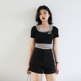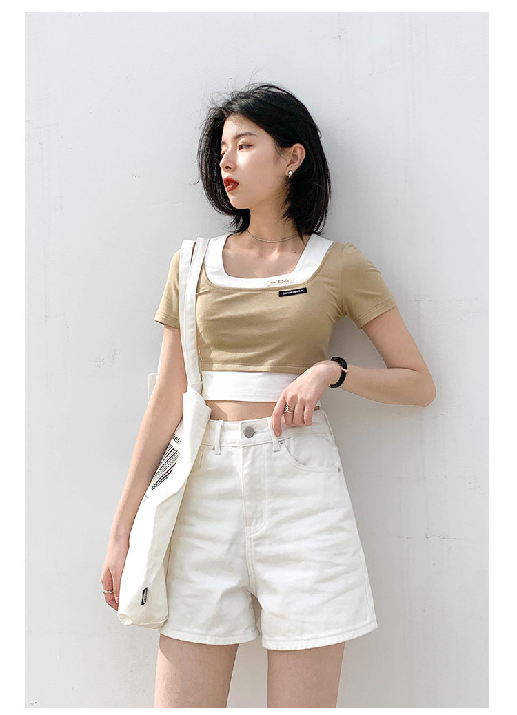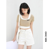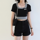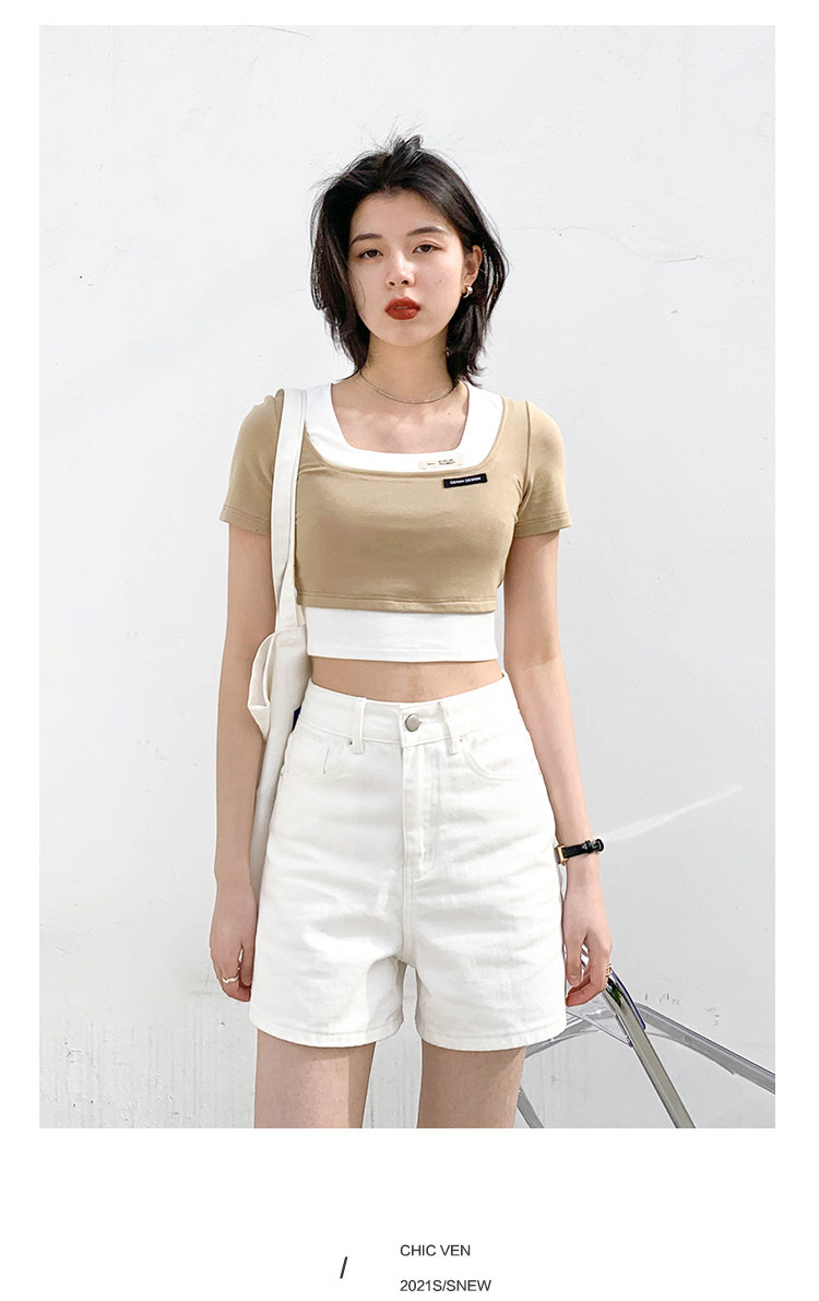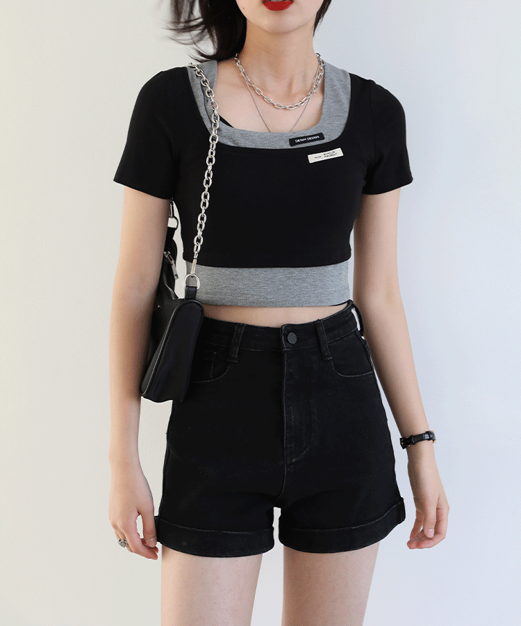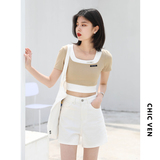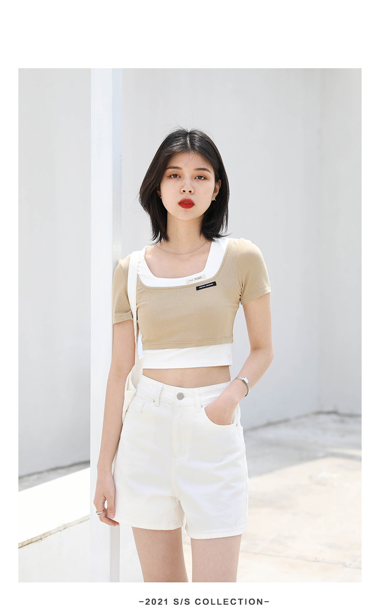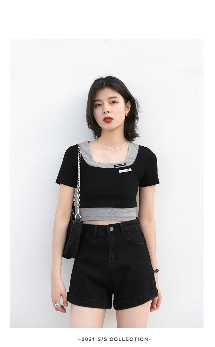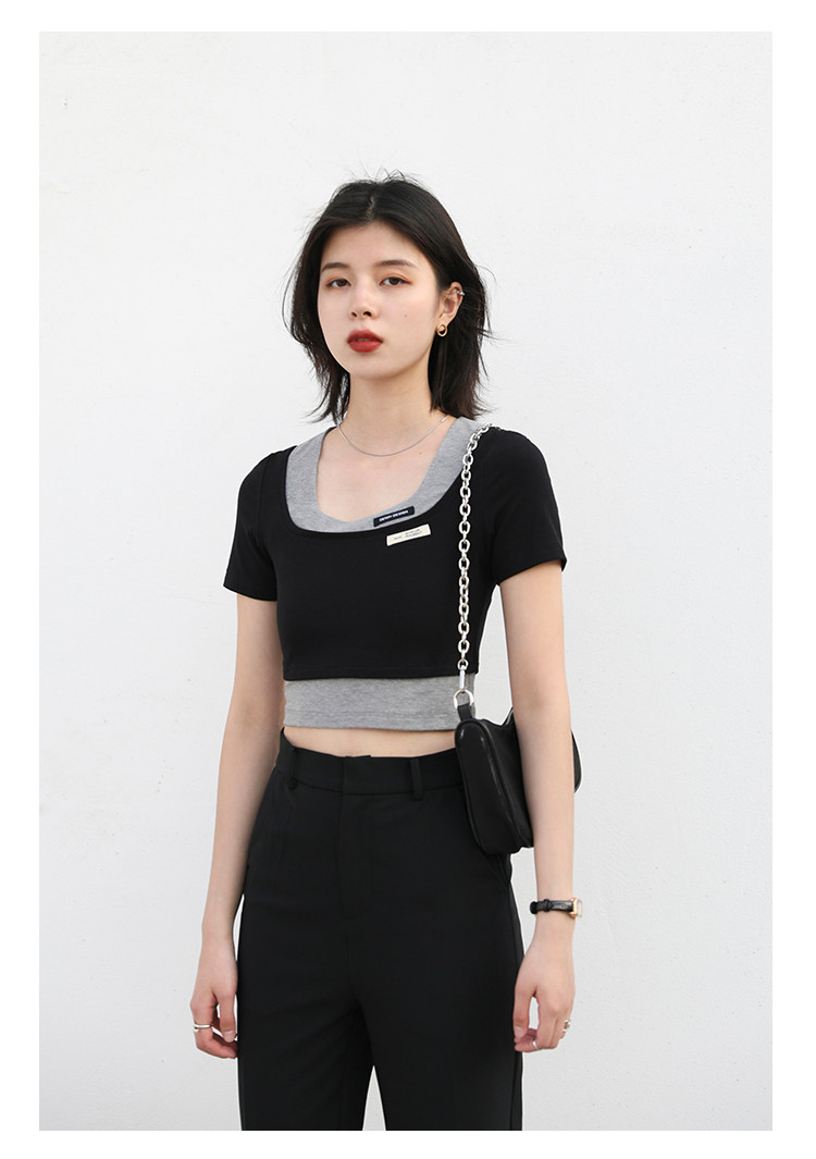 Дизайнерский комплект, летняя футболка, тренд сезона, квадратный вырез, облегающий крой, короткий рукав
