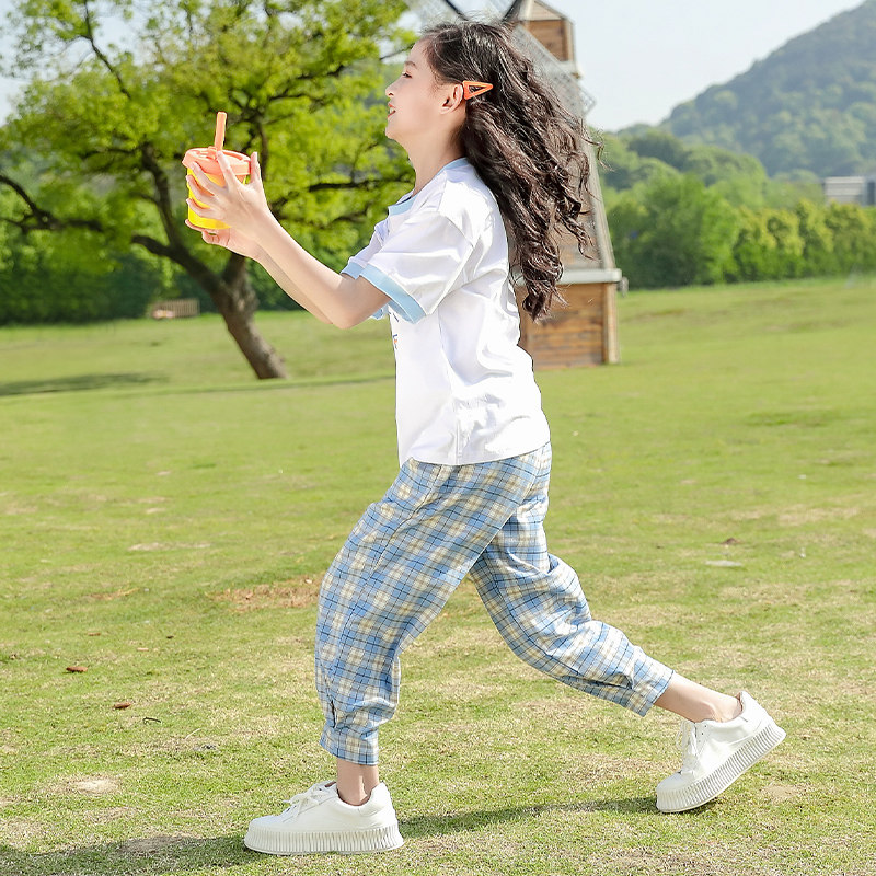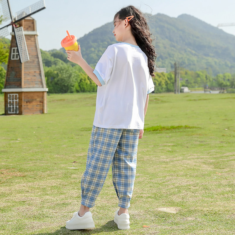 Летняя одежда, летний детский комплект, популярно в интернете, 2022, в западном стиле, подходит для подростков, короткий рукав