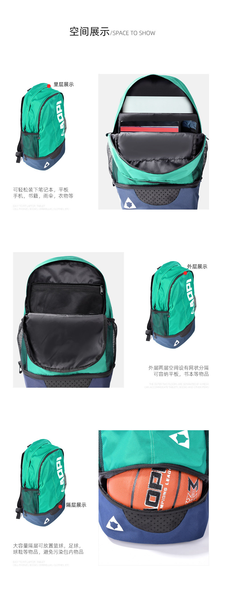 奥匹 Спортивные баскетбольные вместительные и большые футбольные бретели, школьный рюкзак для отдыха, сумка для путешествий, надевается на плечо
