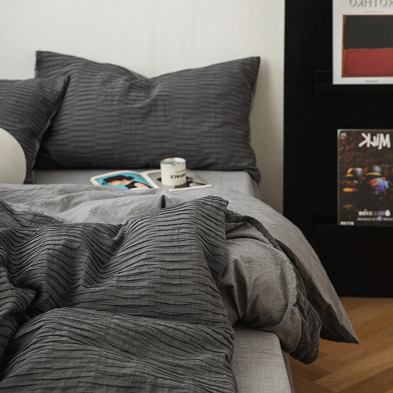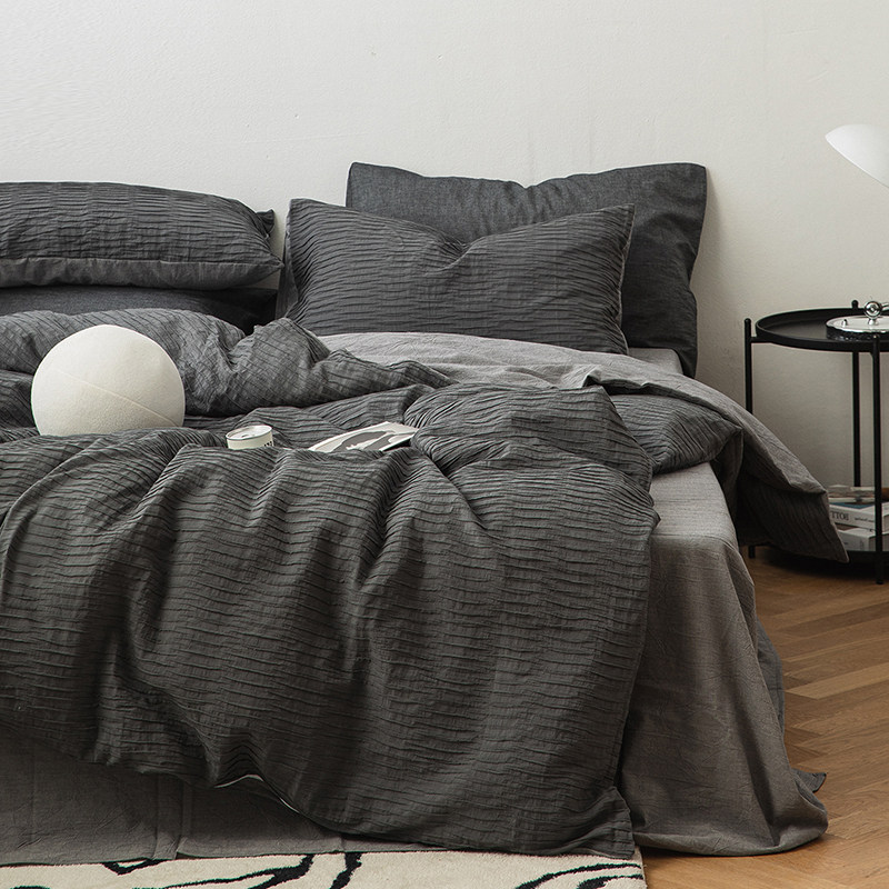Хлопковый комплект, простыня, мужской минималистичный пододеяльник, изысканный стиль, 4 предмета, коллекция 2023, постельные принадлежности