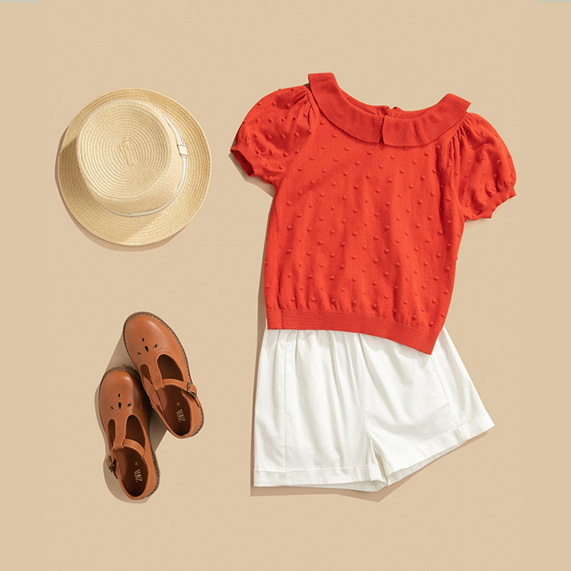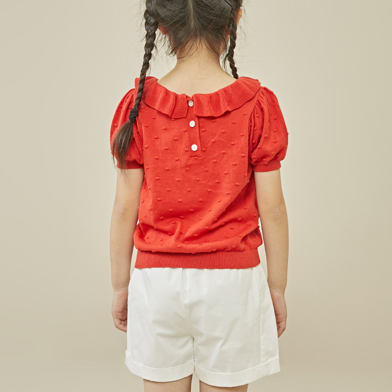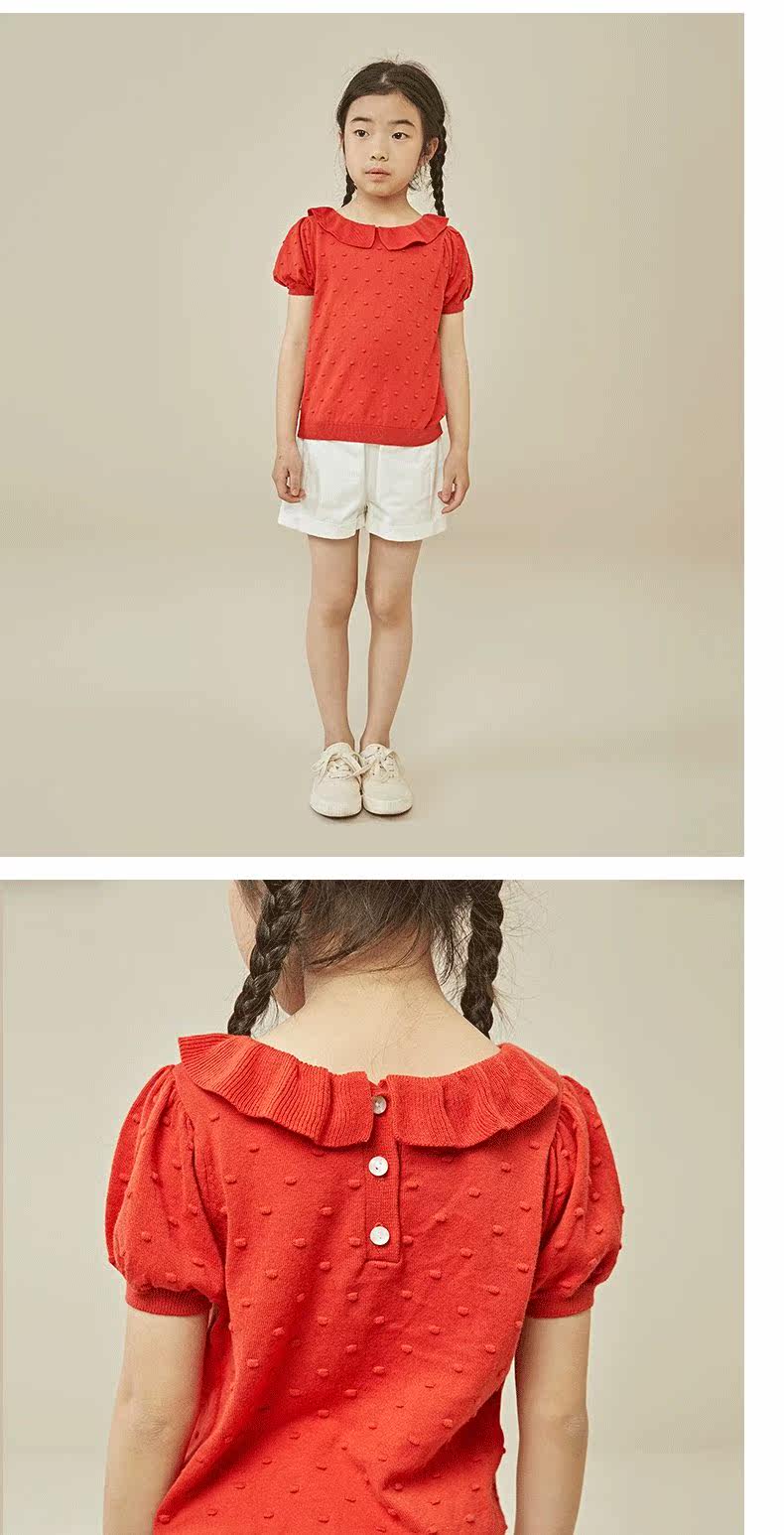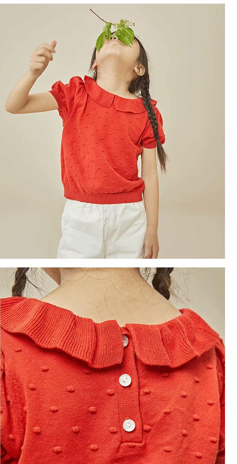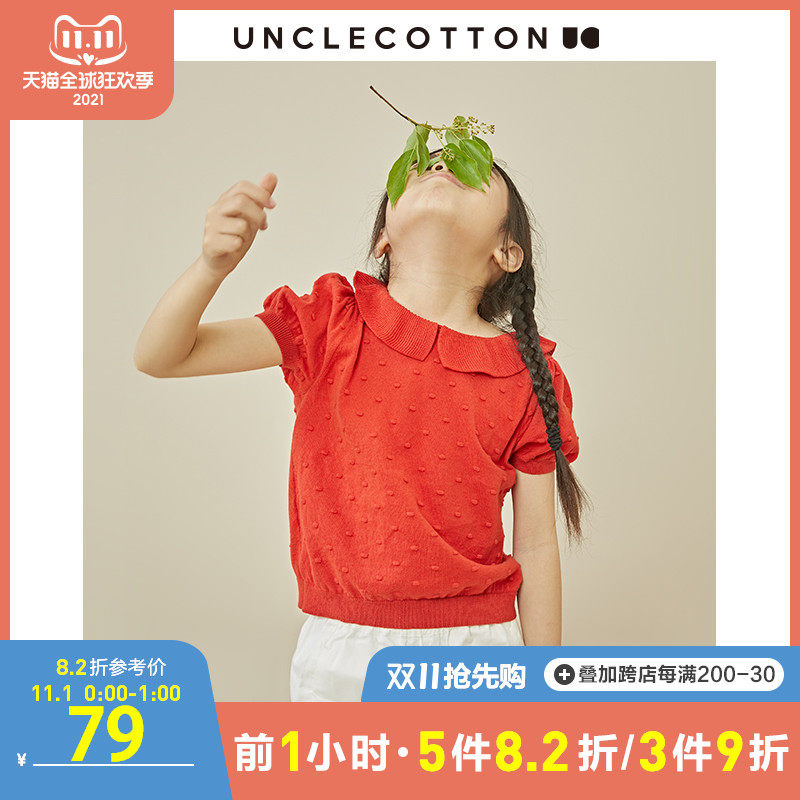 【Специальная цена на получение сделок】 Размер 110 хлопковые дядя девочка вязаная маленькая девочка с короткими рукавами