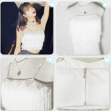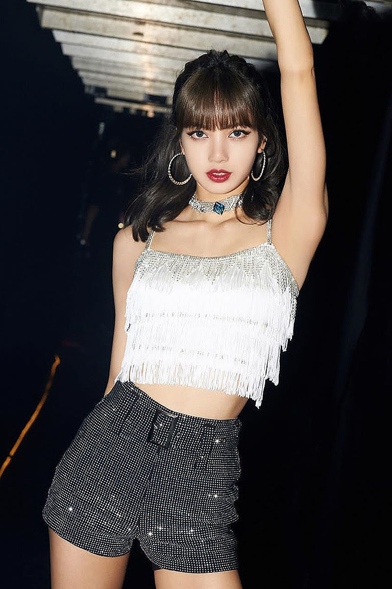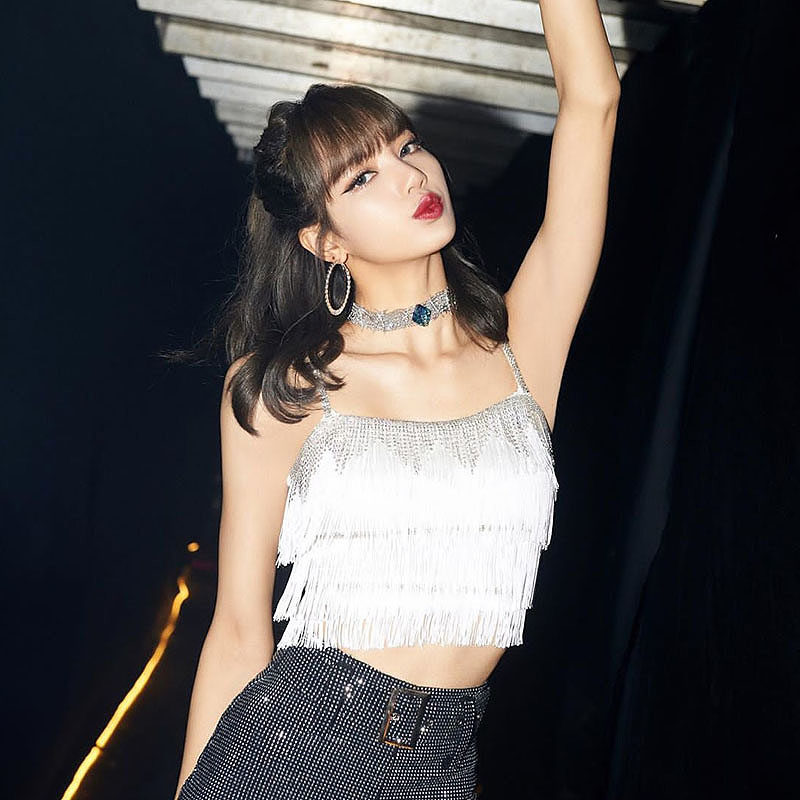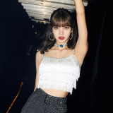 BlackPink Lisa То же самое белый бриллиант пролив Suscudit Vallest Dance Series Sequenant Short Top Женщина