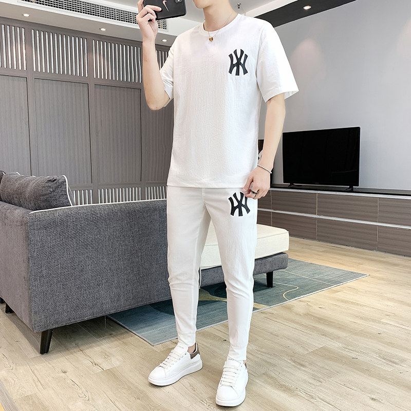 Футболка с коротким рукавом, летний шелковый спортивный комплект, летняя одежда, популярно в интернете