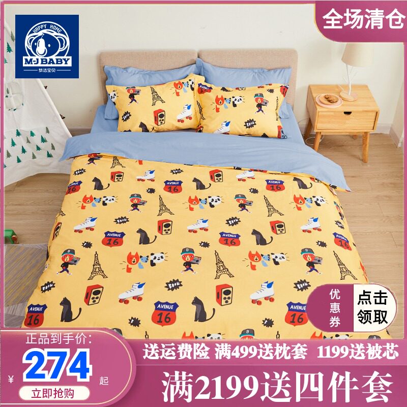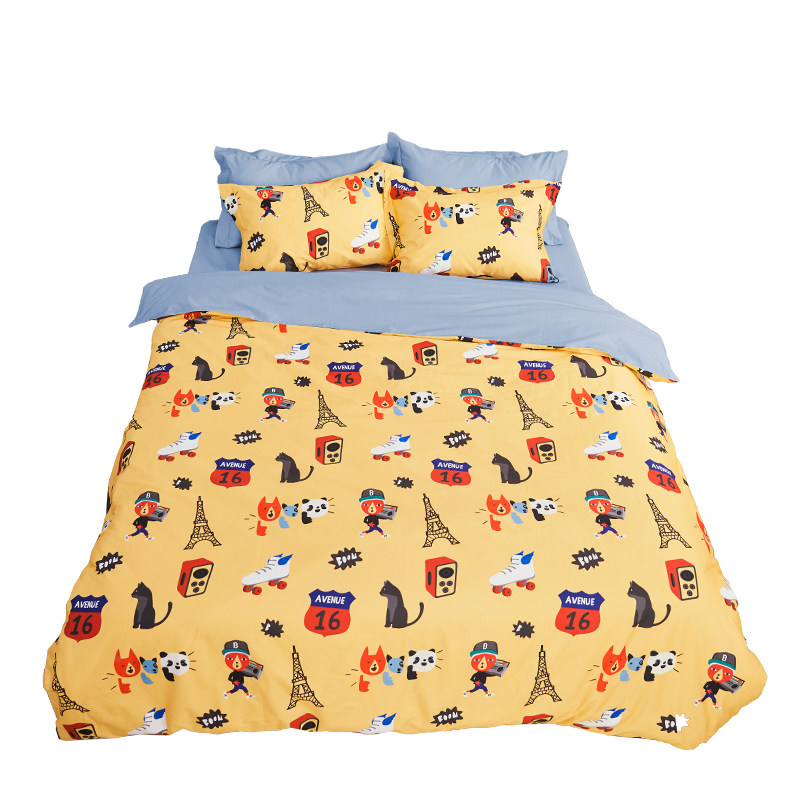 Детский мультяшный хлопковый комплект, покрывало, пододеяльник, простыня, 4 предмета, 1.5м