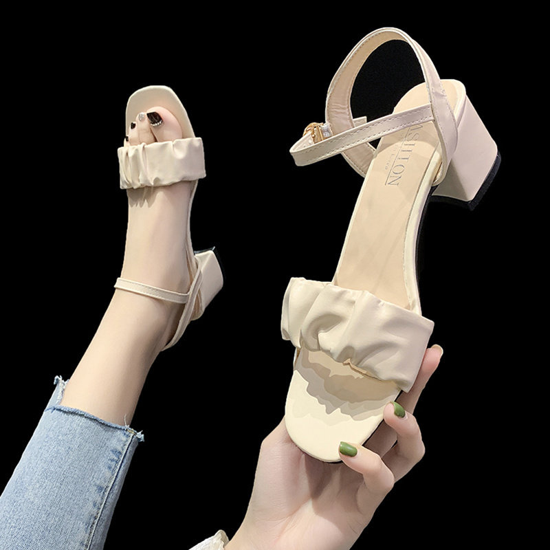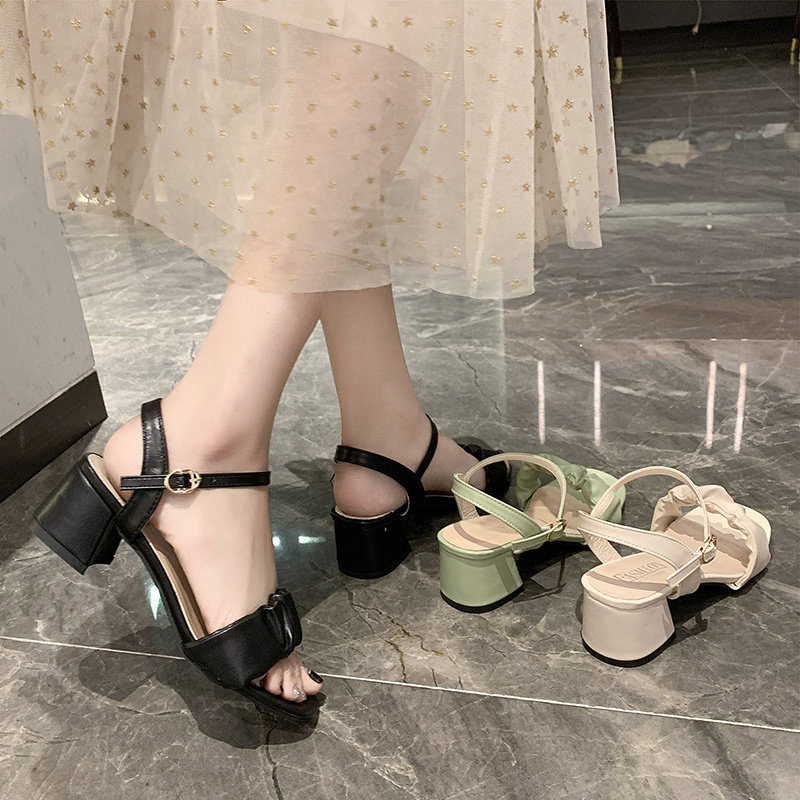 Сандалии, летние модные универсальные туфли на высоком каблуке на высоком каблуке, французский стиль, 2021 года, популярно в интернете