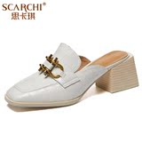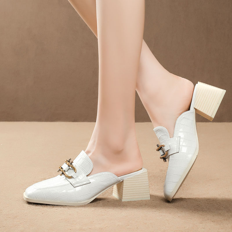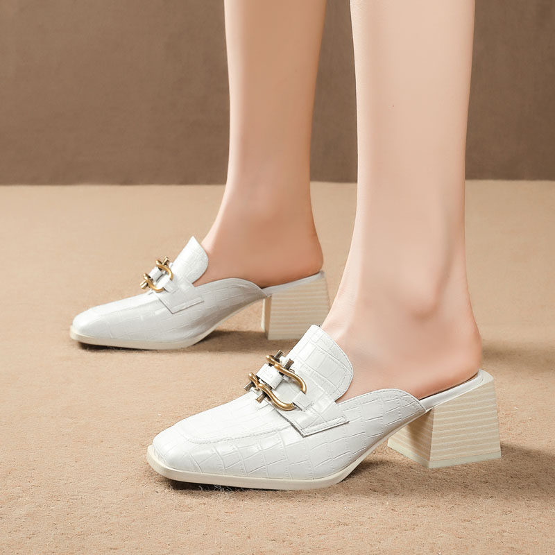 Тапочки, летняя металлическая высокая обувь, коллекция 2021, большой размер, из натуральной кожи