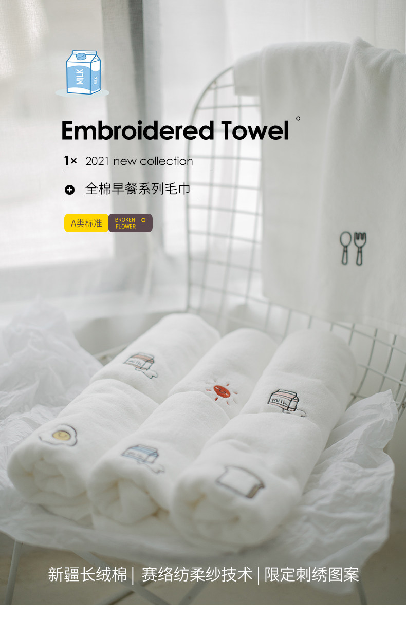Свежее хлопковое милое мягкое полотенце для умывания, увеличенная толщина, хорошо впитывает воду, с вышивкой