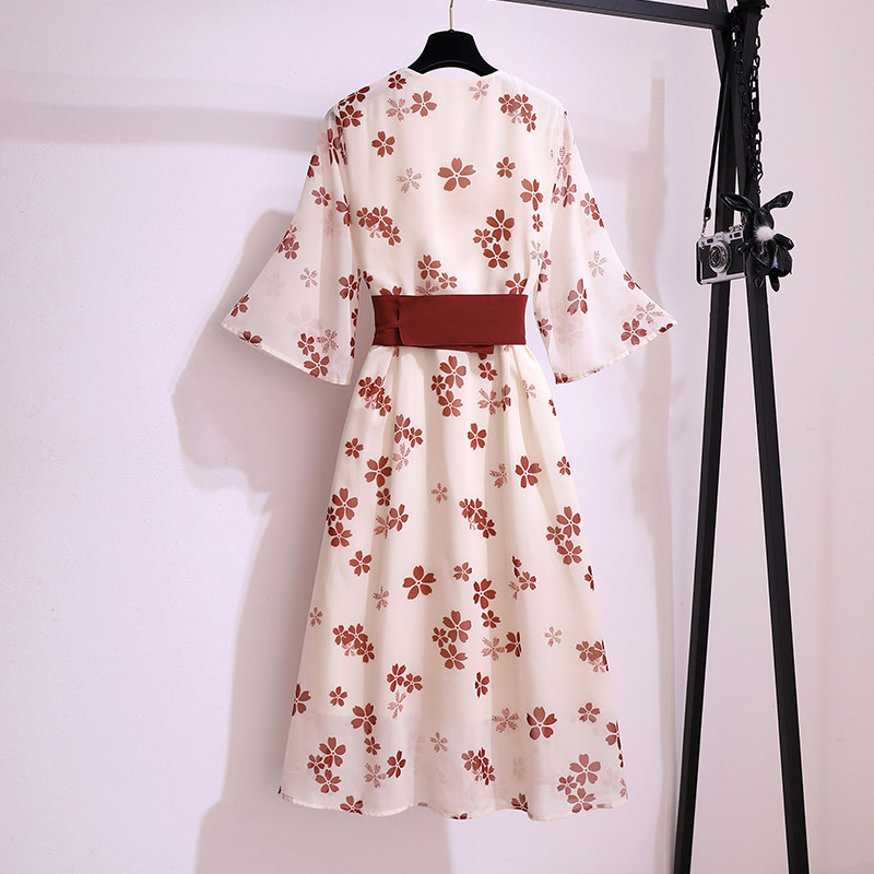 Летний корсет, шифоновое платье, большой размер, сезон 2021, в западном стиле, подходит для полных девушек, по фигуре, в цветочек