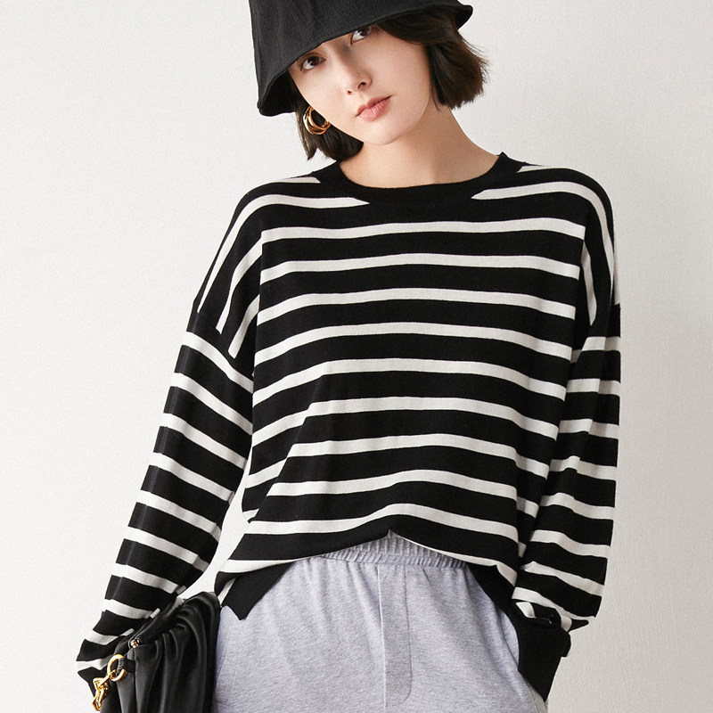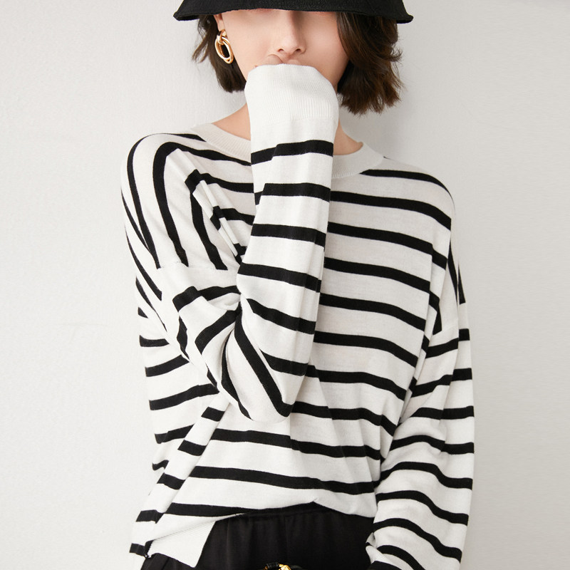 Тонкий трикотажный лонгслив, осенний шерстяной свитер, оверсайз, коллекция 2021