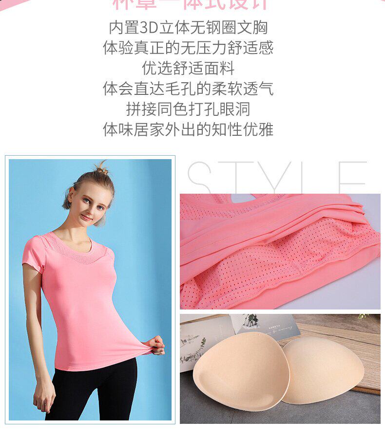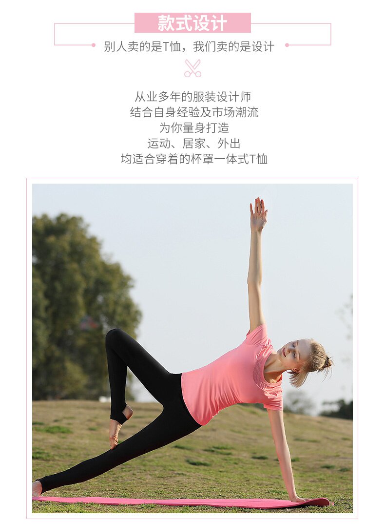 Одежда для йоги, вставки в бюстгальтер, тонкая футболка с коротким рукавом, подходит для начинающих, свободный крой