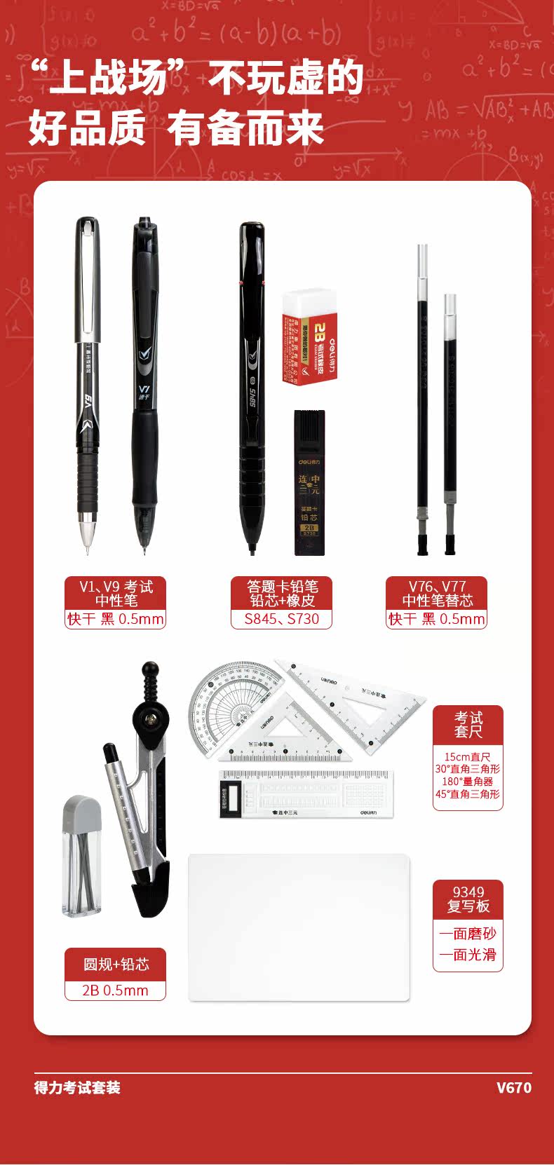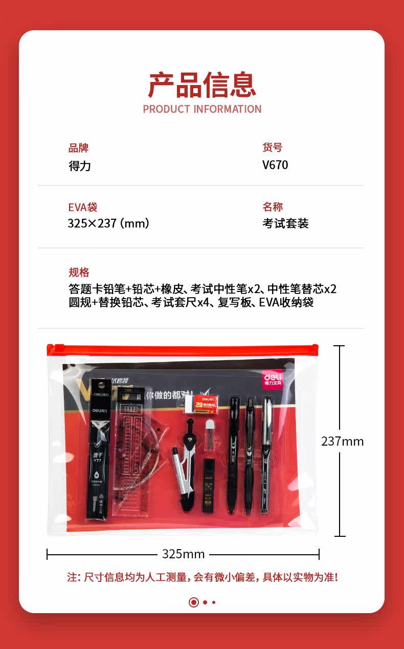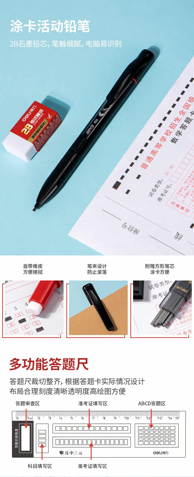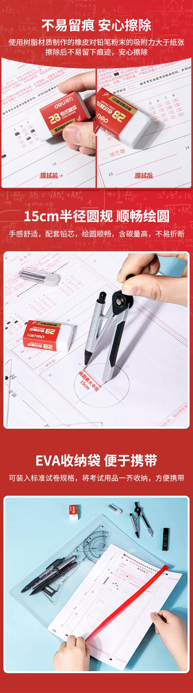 Deli Test Bag Специальный комплект студенческих канцелярских принадлежностей 2, чем карта карандашной карандашной рукавой карандаш Core Pad в средней школе вступительный экзамен