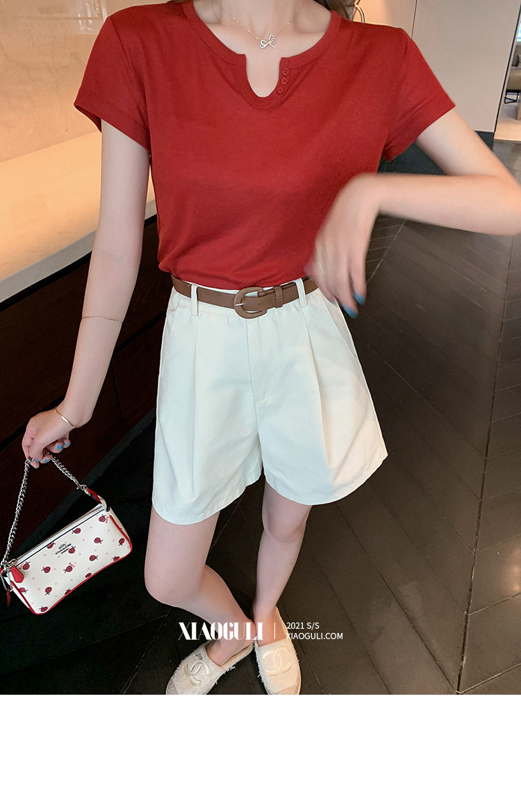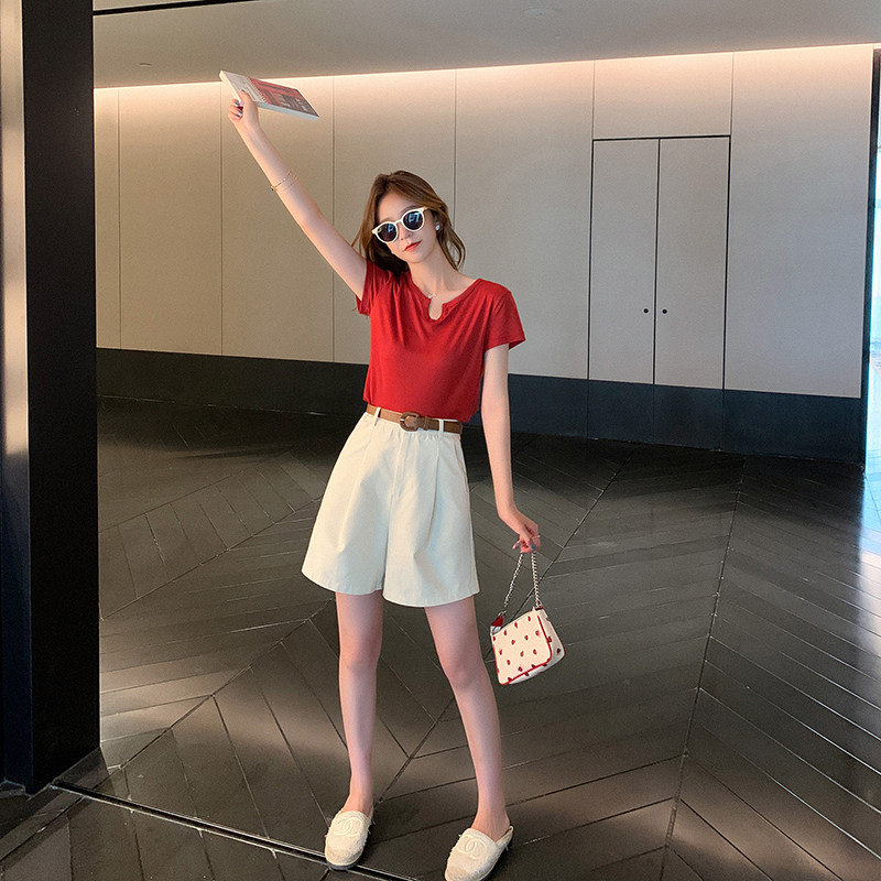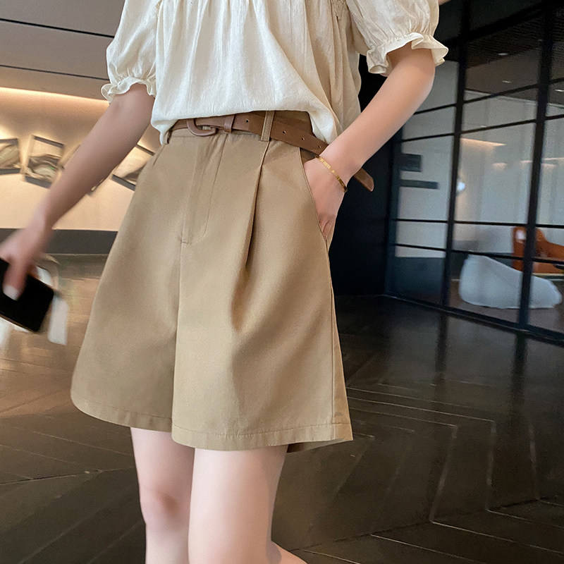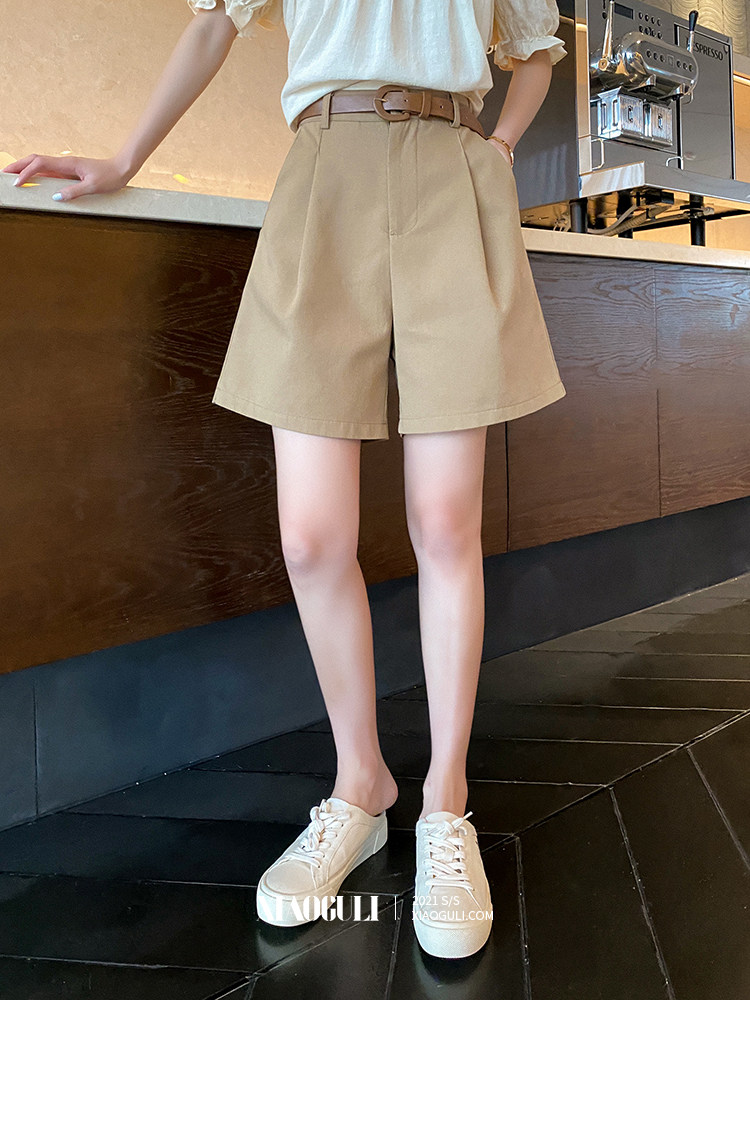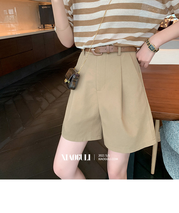 Шорты, летние однотонные штаны, приталенный костюм для отдыха, 2021 года, высокая талия, свободный прямой крой