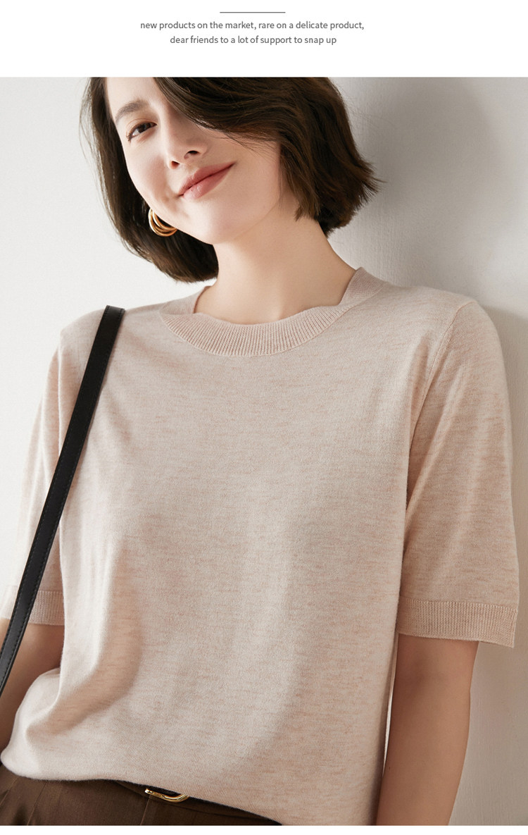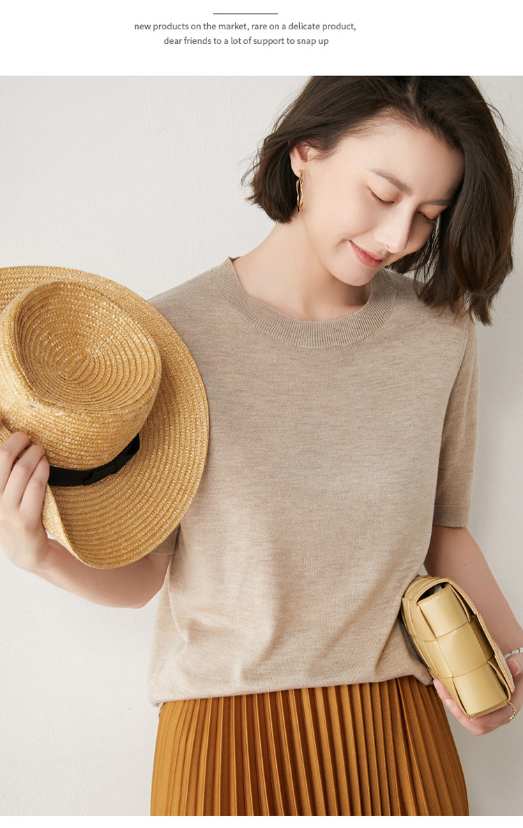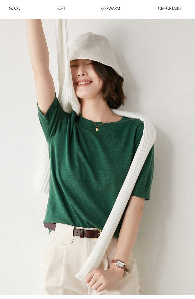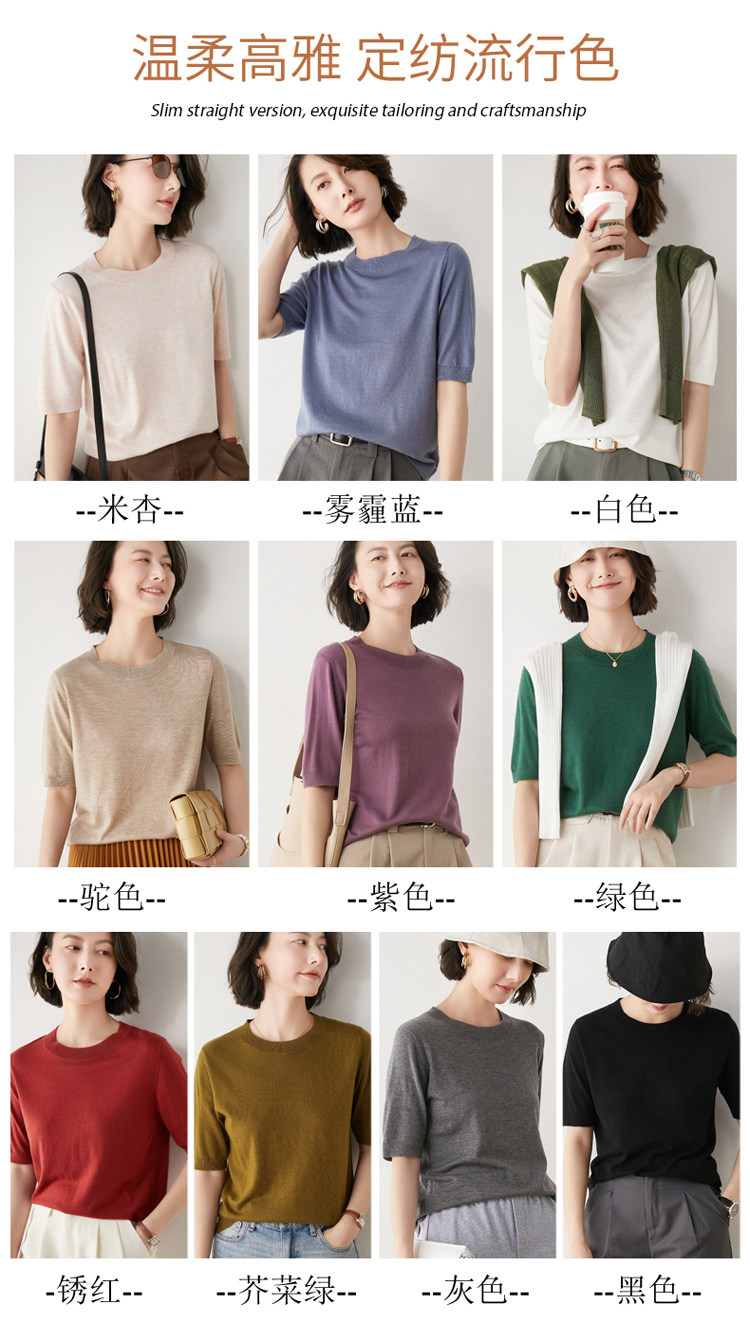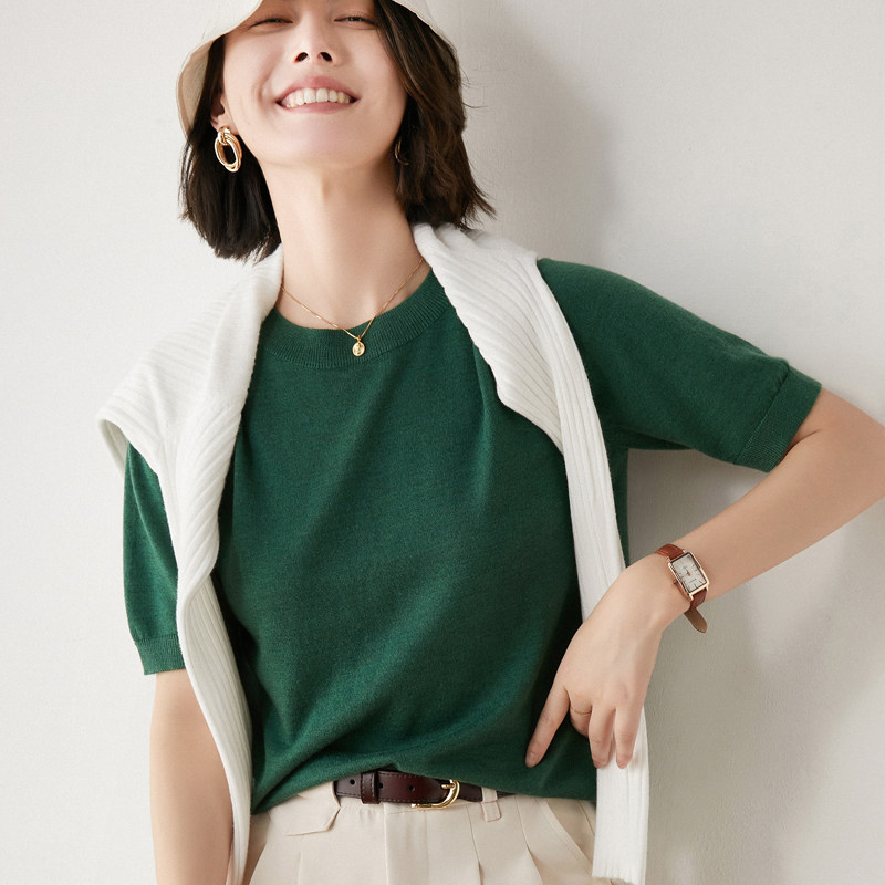 Летняя шерстяная базовая футболка с круглым воротником, летняя одежда, короткий рукав, свободный крой, большой размер
