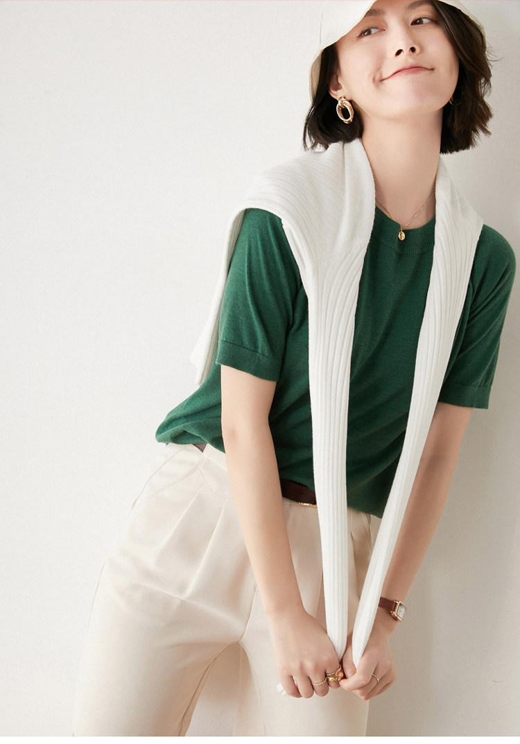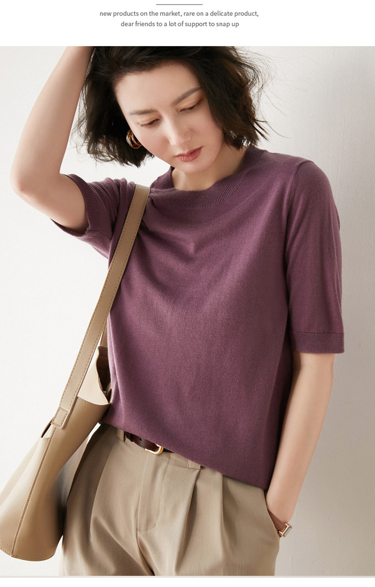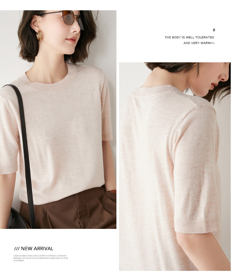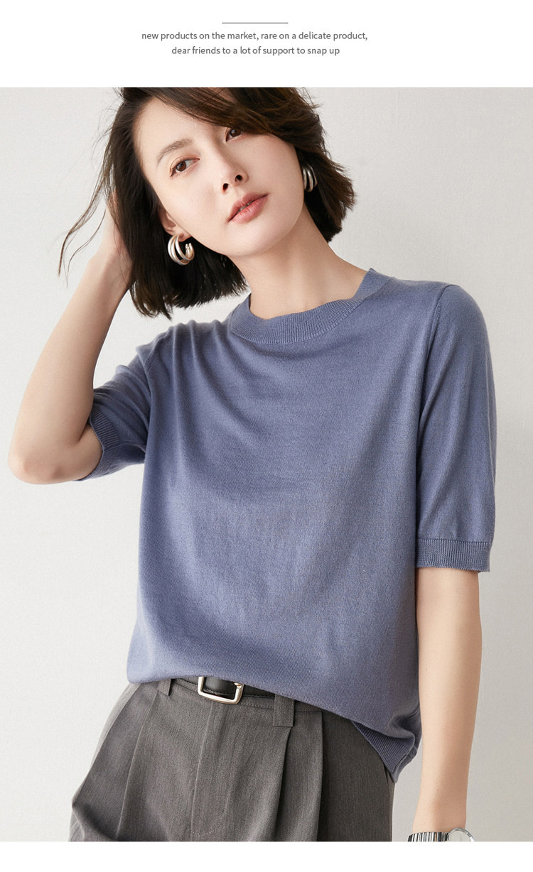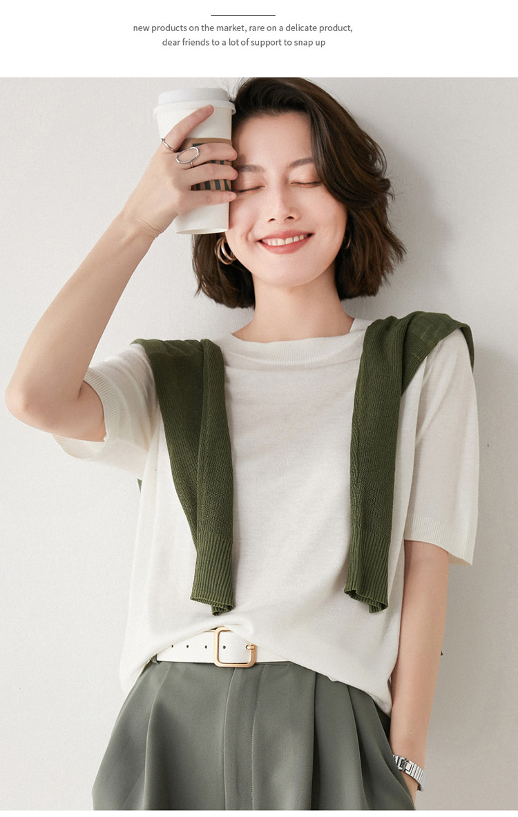 Летняя шерстяная базовая футболка с круглым воротником, летняя одежда, короткий рукав, свободный крой, большой размер