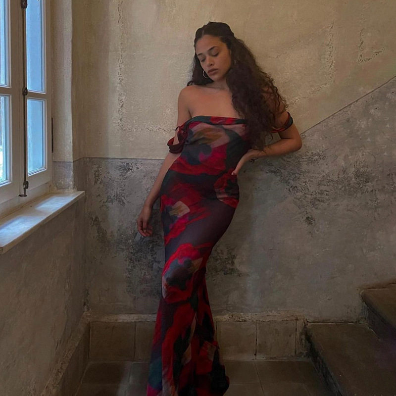 Летнее сексуальное длинное платье, европейский стиль, открытые плечи, эффект подтяжки