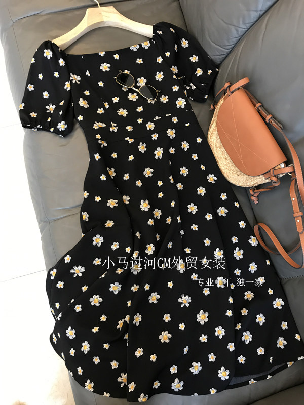 Ретро летнее платье, по фигуре, французский стиль, квадратный вырез