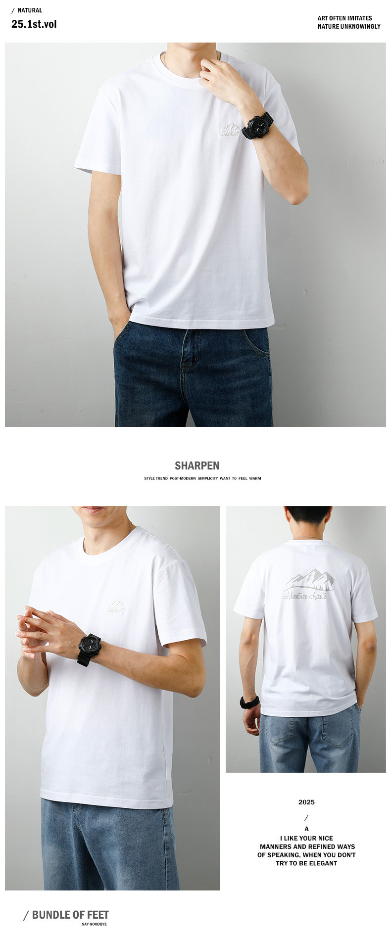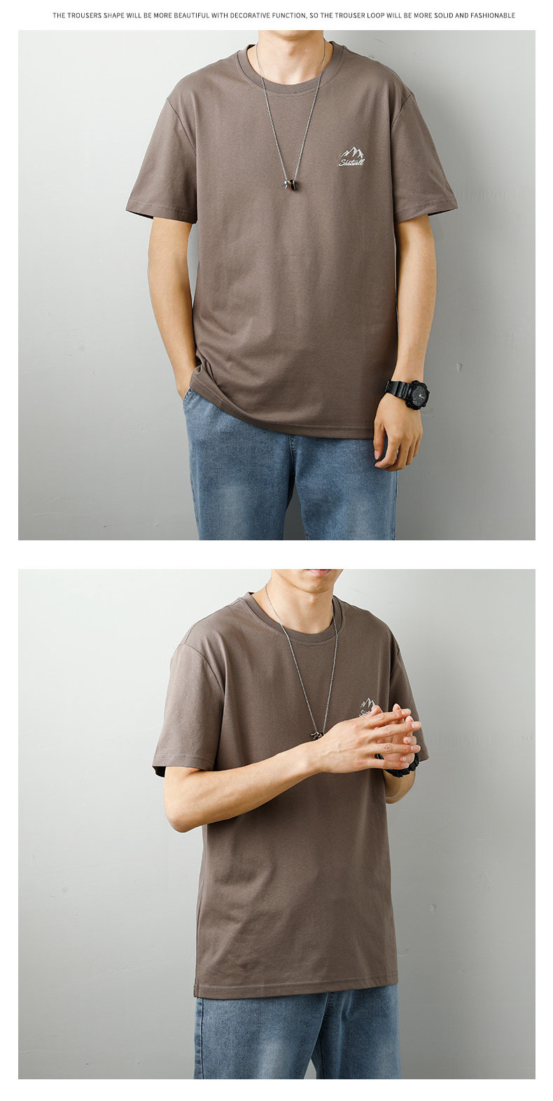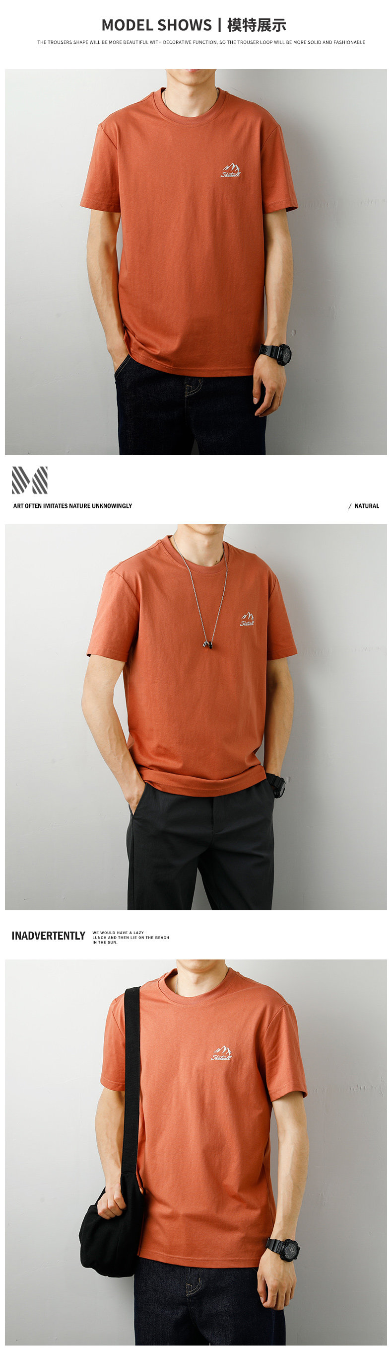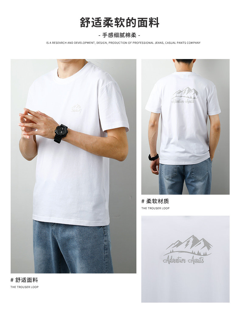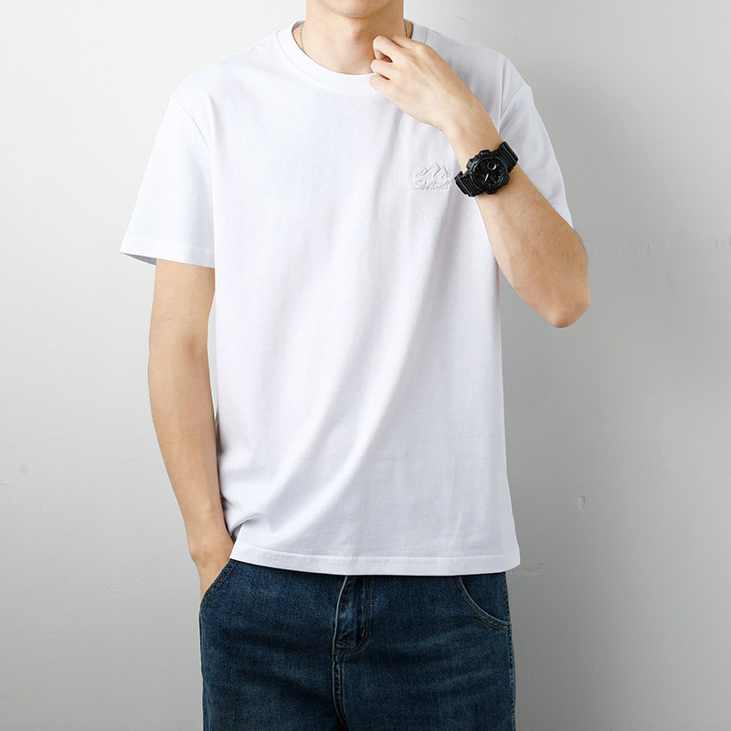 Мужская летняя шелковая белая футболка с круглым воротником, с вышивкой