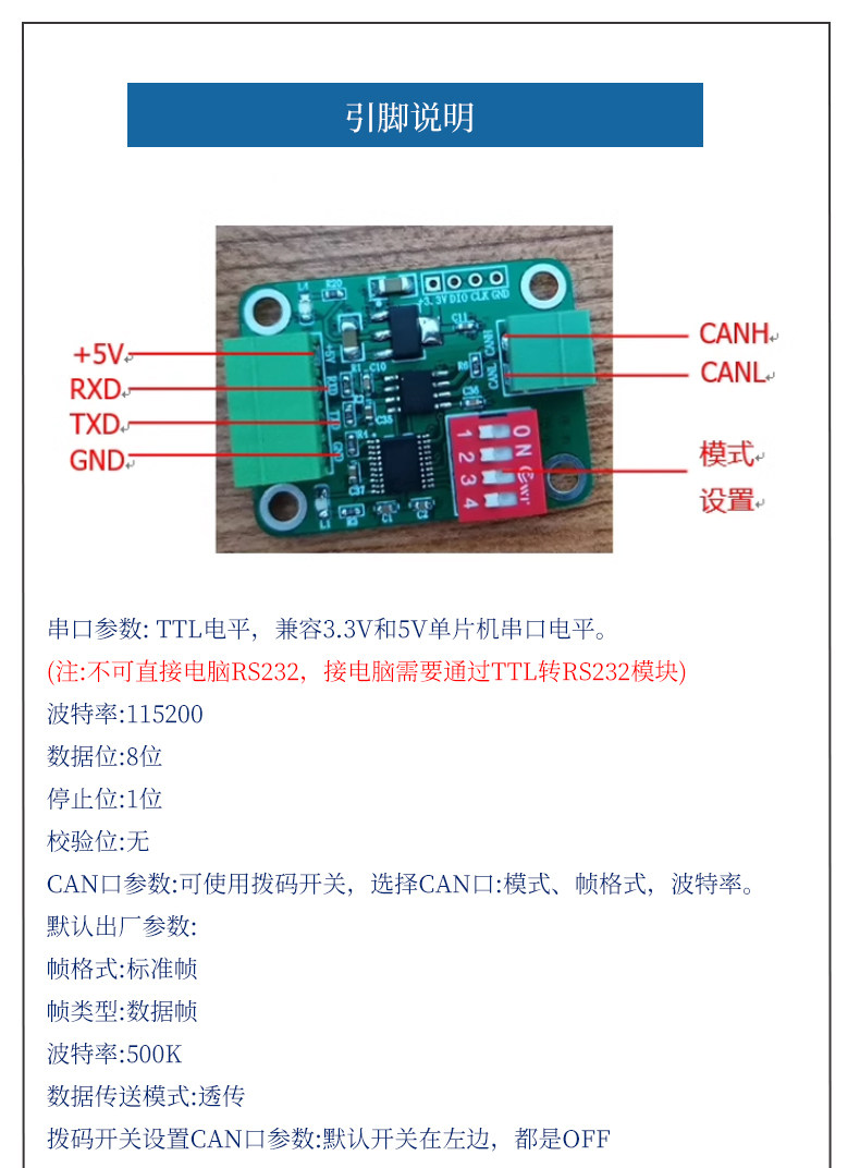 | Цвет: | TTL серийный порт для модуля шины CAN, Ban Bus до модуля RS485 |