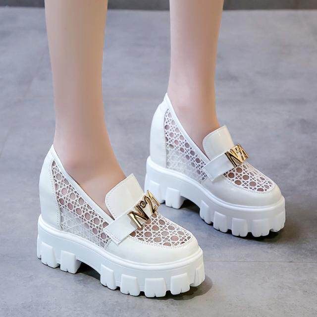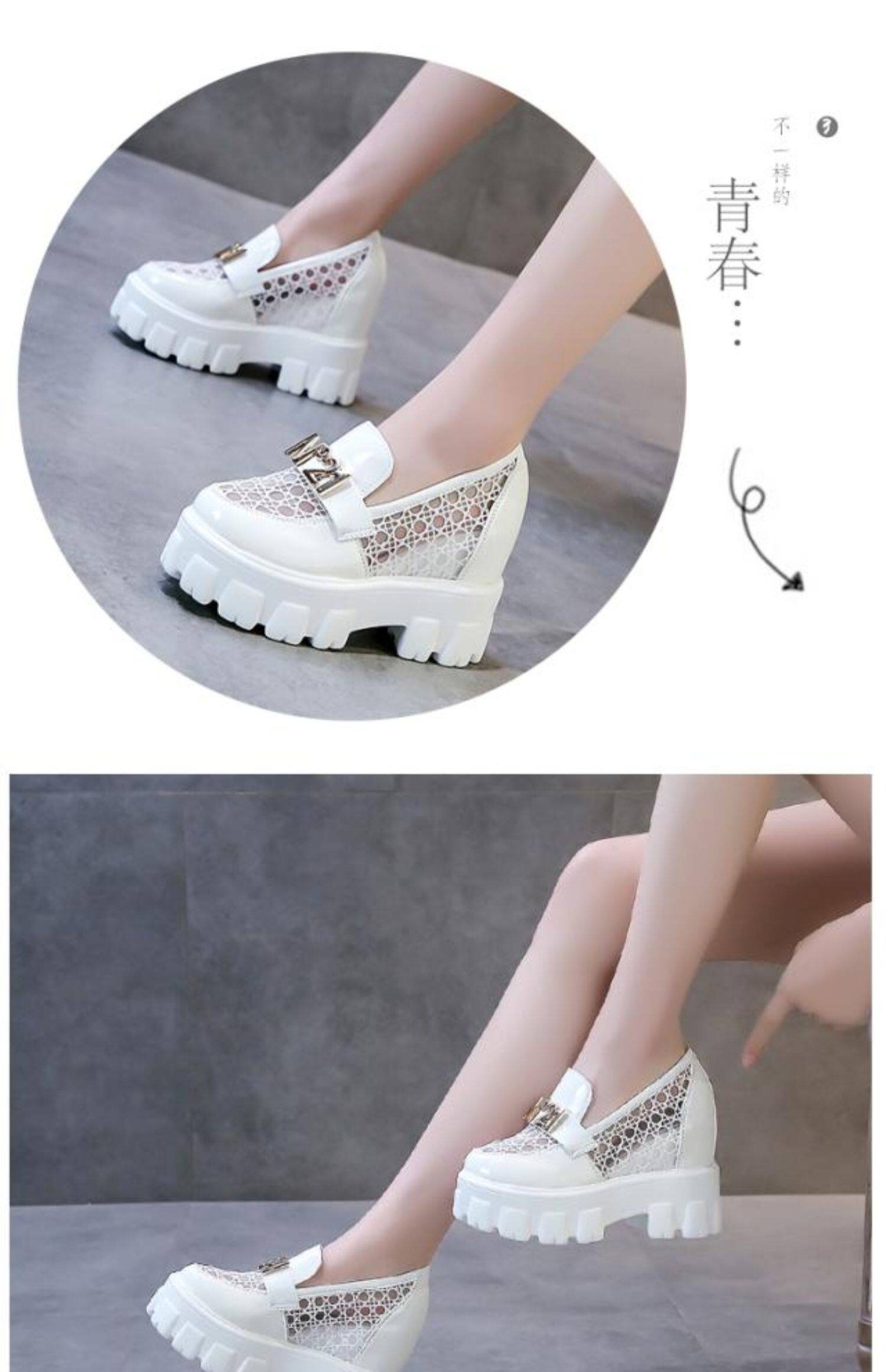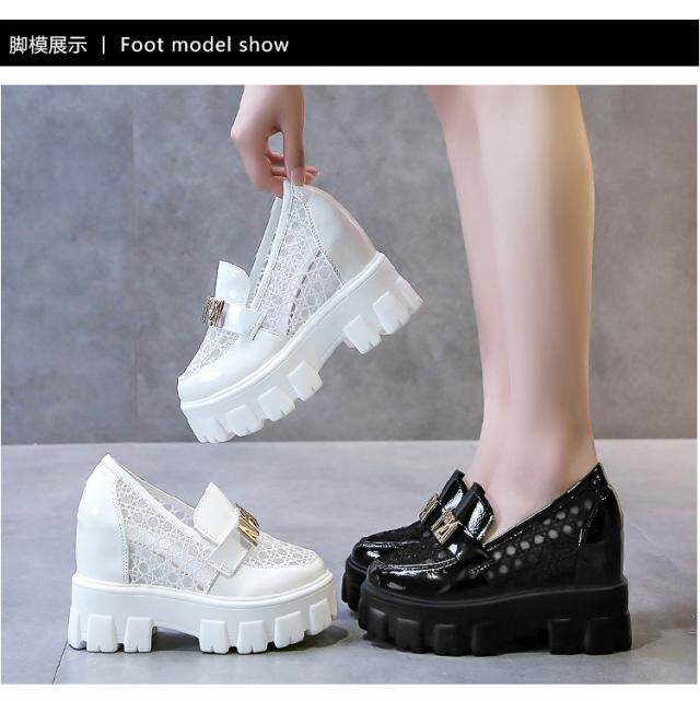 Женские туфли с полой дышащей внутренней частью, увеличивающие высоту, лето 2021, новый стиль, модная сетчатая модная универсальная женская обувь на танкетке на толстой подошве