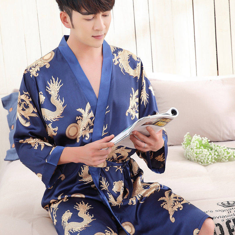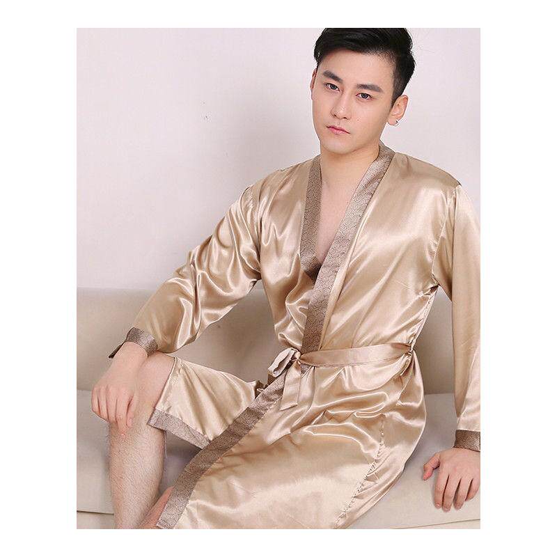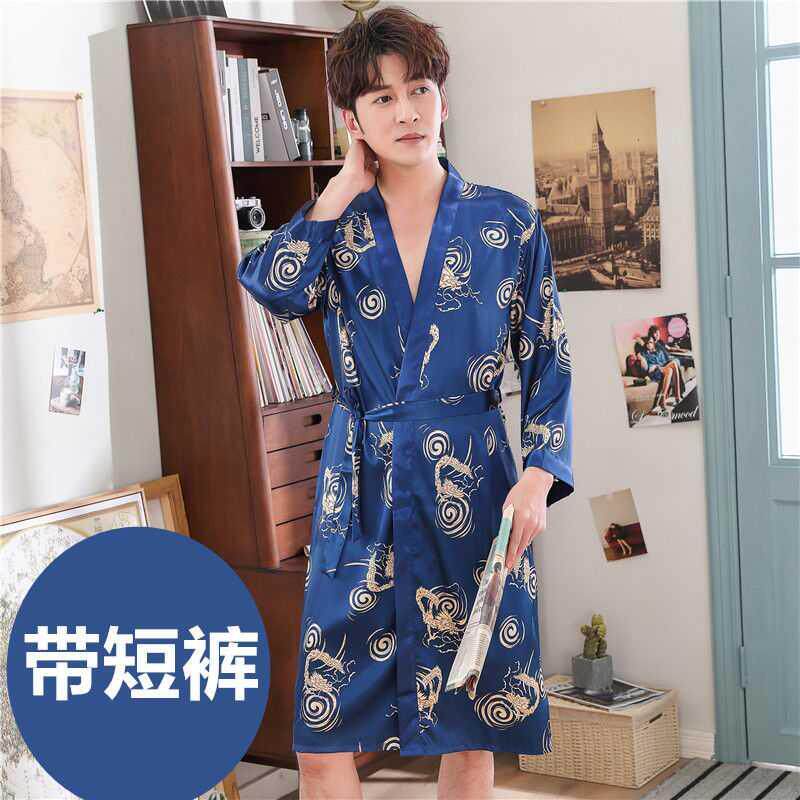 Шелковый банный халат, летний тонкий лонгслив, сексуальная мужская длинная пижама, короткий рукав
