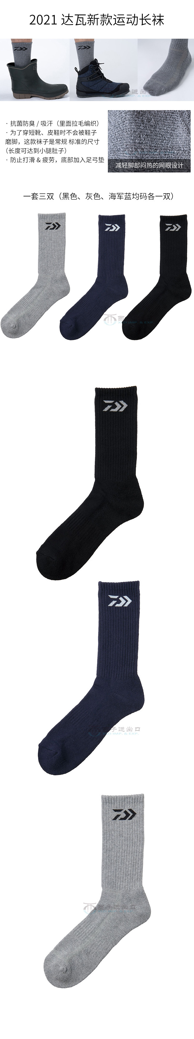 Новые Daiwa DS-7021R Sports Long Nocks 3 двусторонних антибактериальных дезодоризирующих поглощение пота и дышащие носки