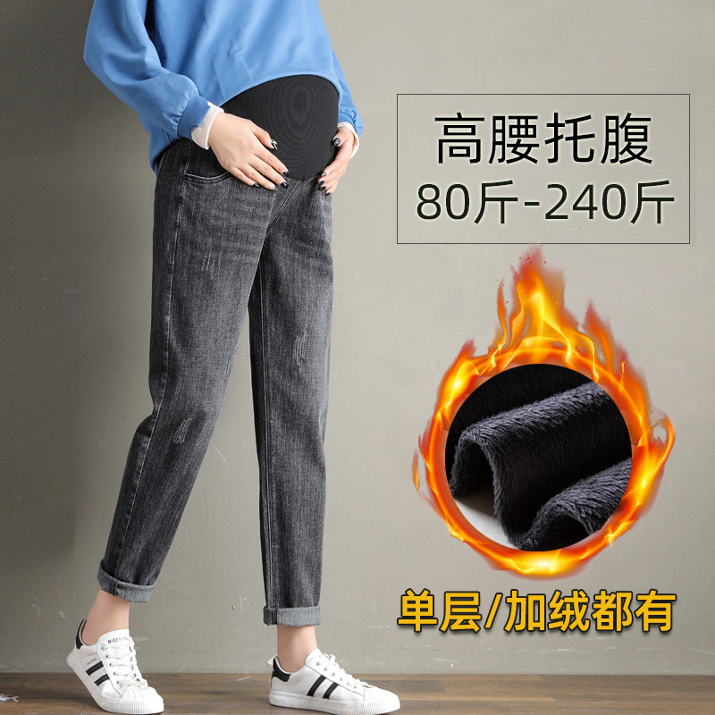 Осенние джинсы для беременных, утепленные штаны, большой размер, свободный прямой крой