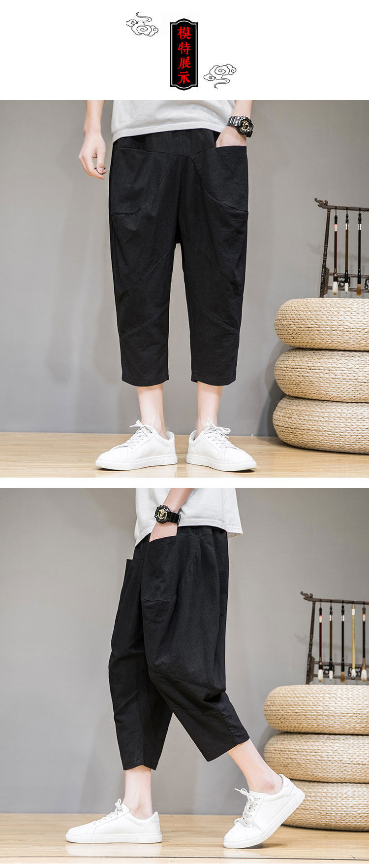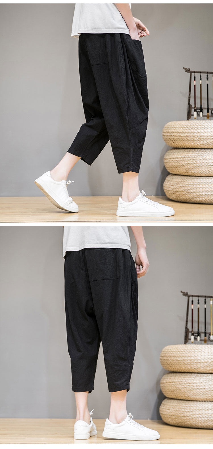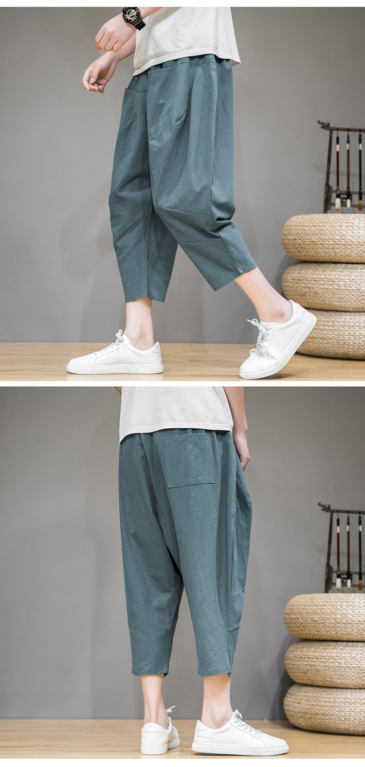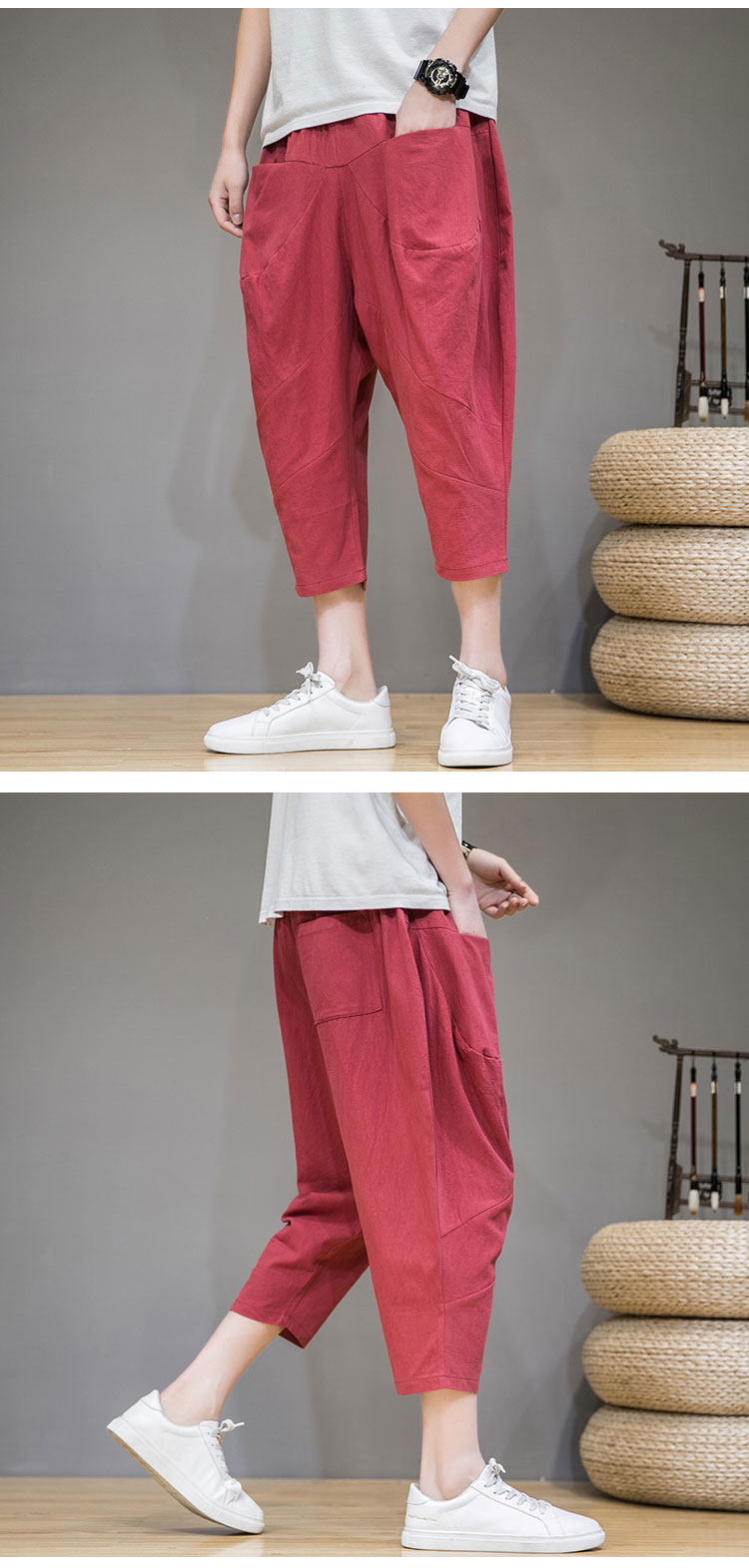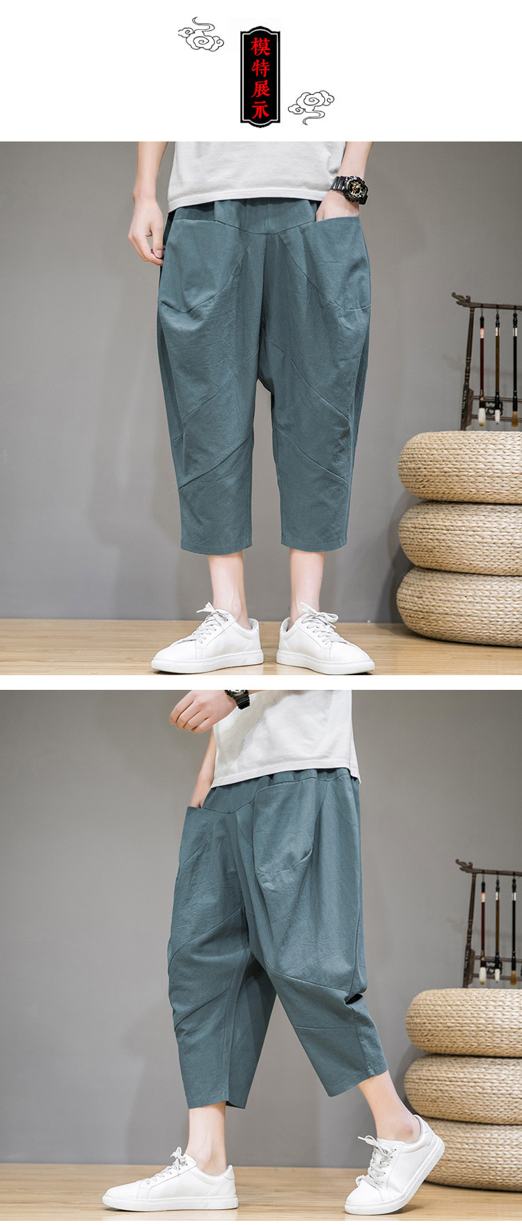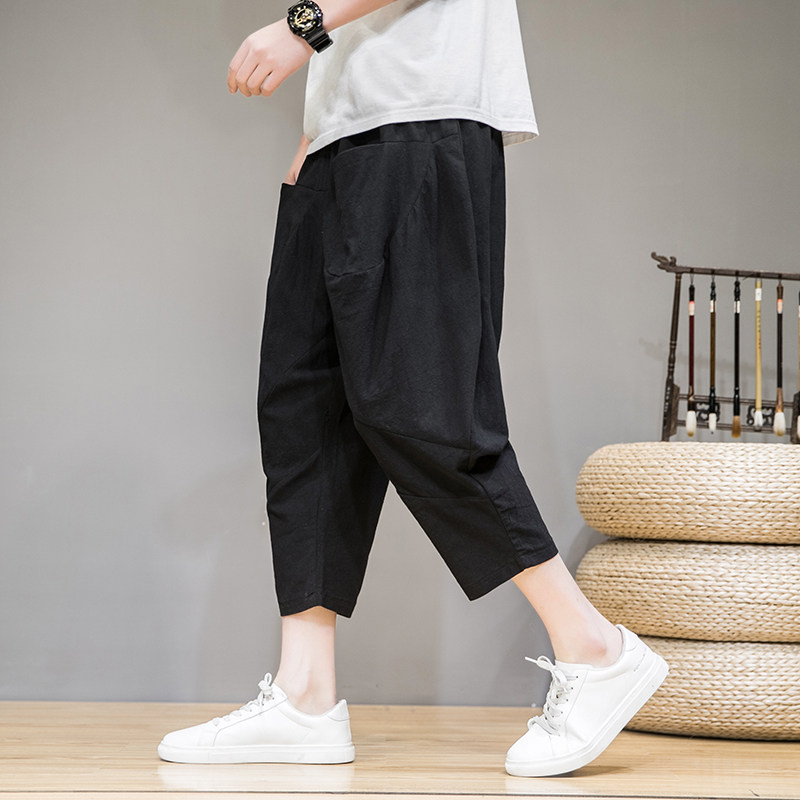 Трендовые тонкие летние штаны, китайский стиль, из хлопка и льна