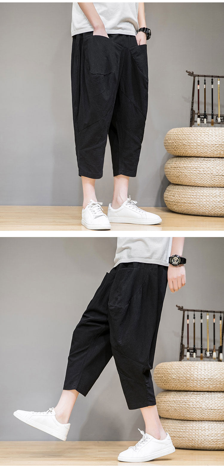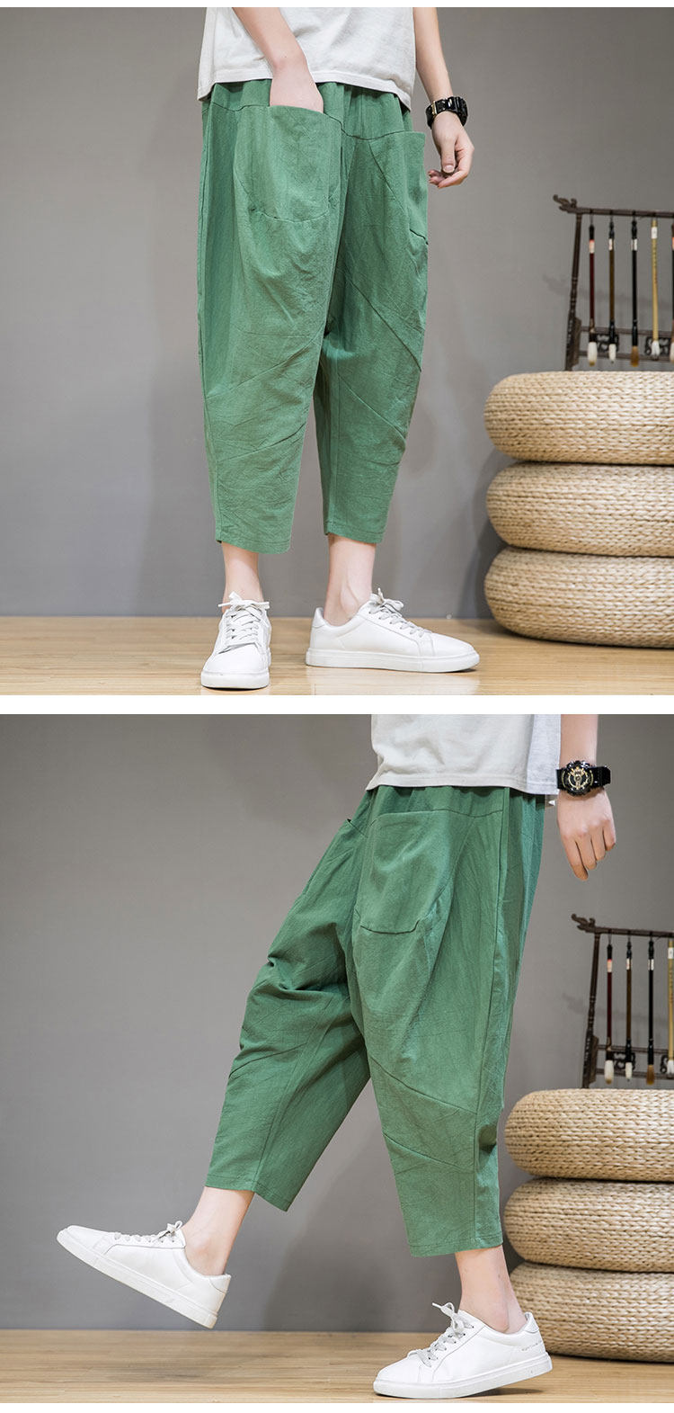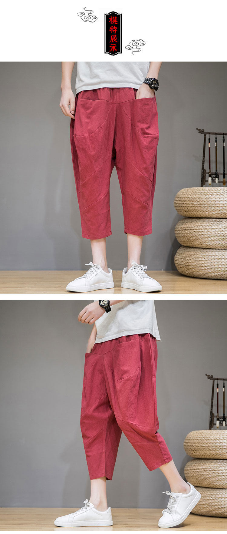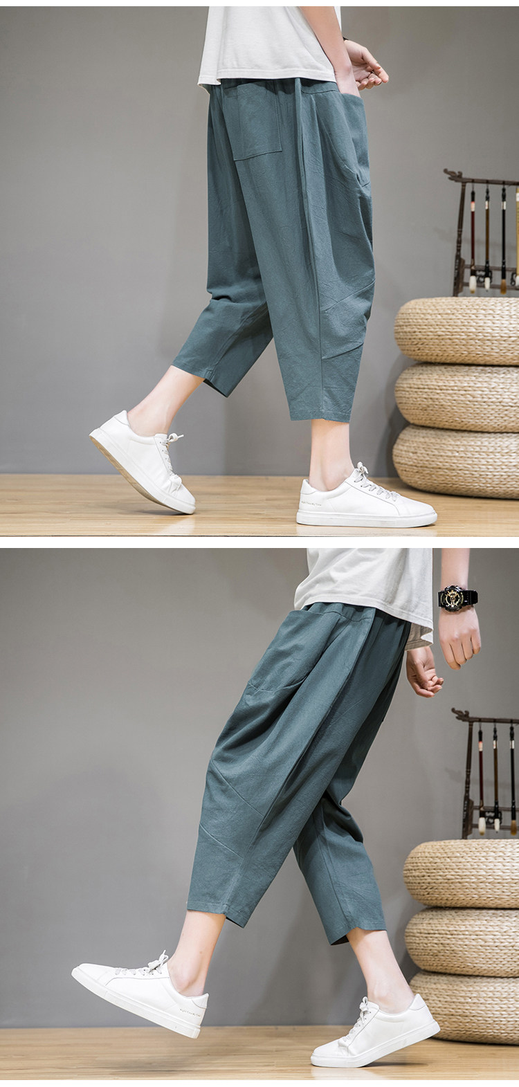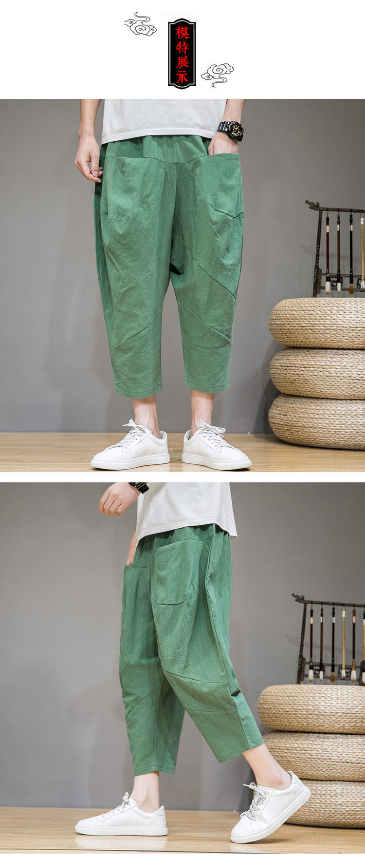 Трендовые тонкие летние штаны, китайский стиль, из хлопка и льна