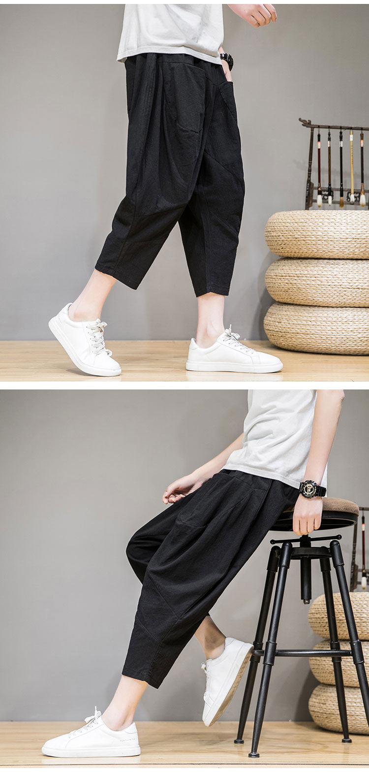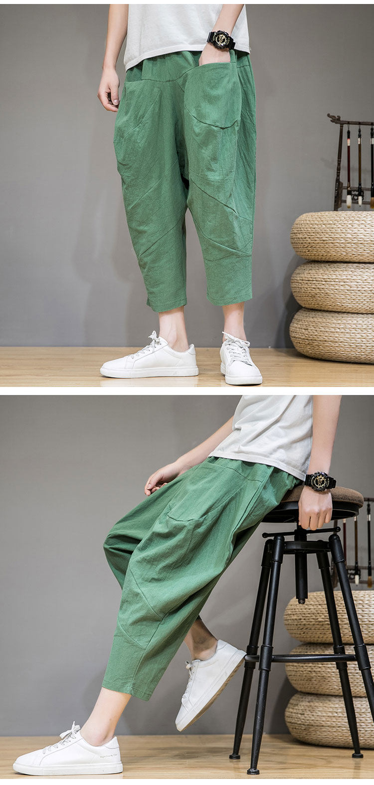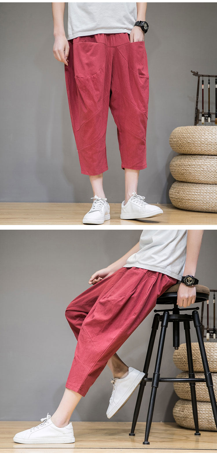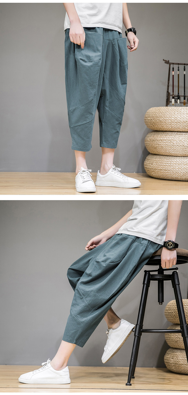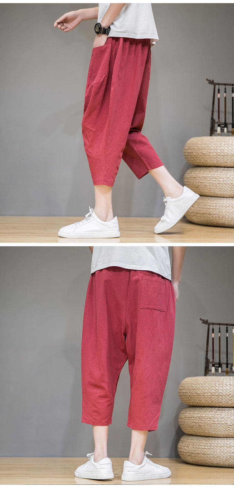Трендовые тонкие летние штаны, китайский стиль, из хлопка и льна