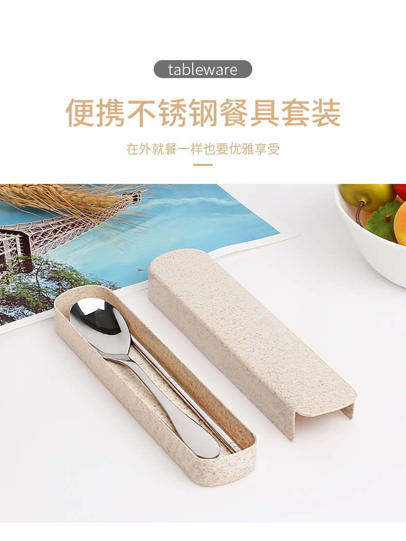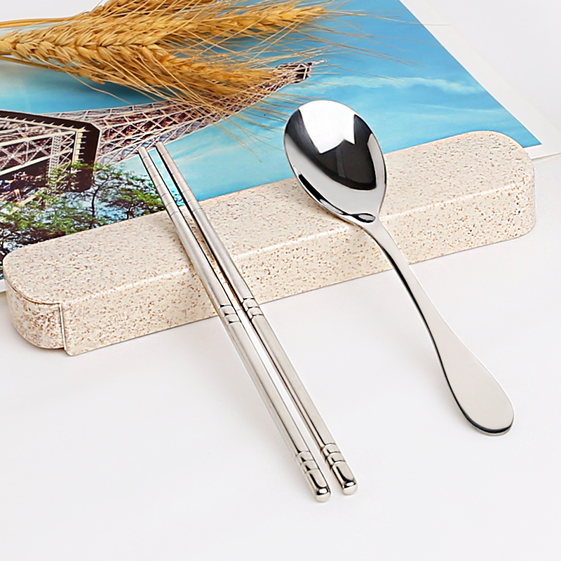 Милая портативная посуда из нержавеющей стали, комплект, удобные палочки для еды, ложка для школьников, простой и элегантный дизайн