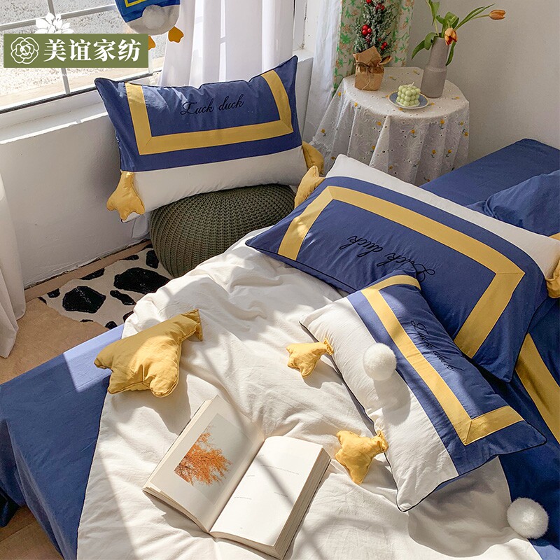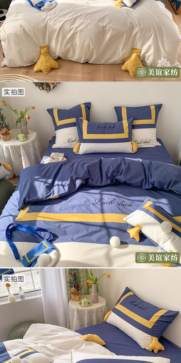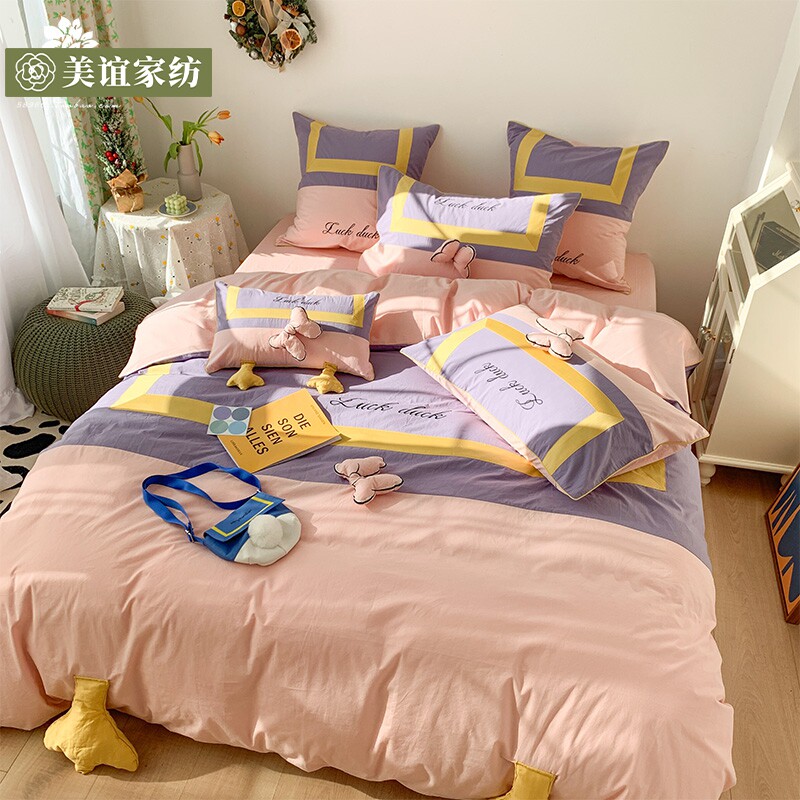 Милый мультяшный хлопковый комплект, детская простыня, мягкая кровать, покрывало, утка, 4 предмета