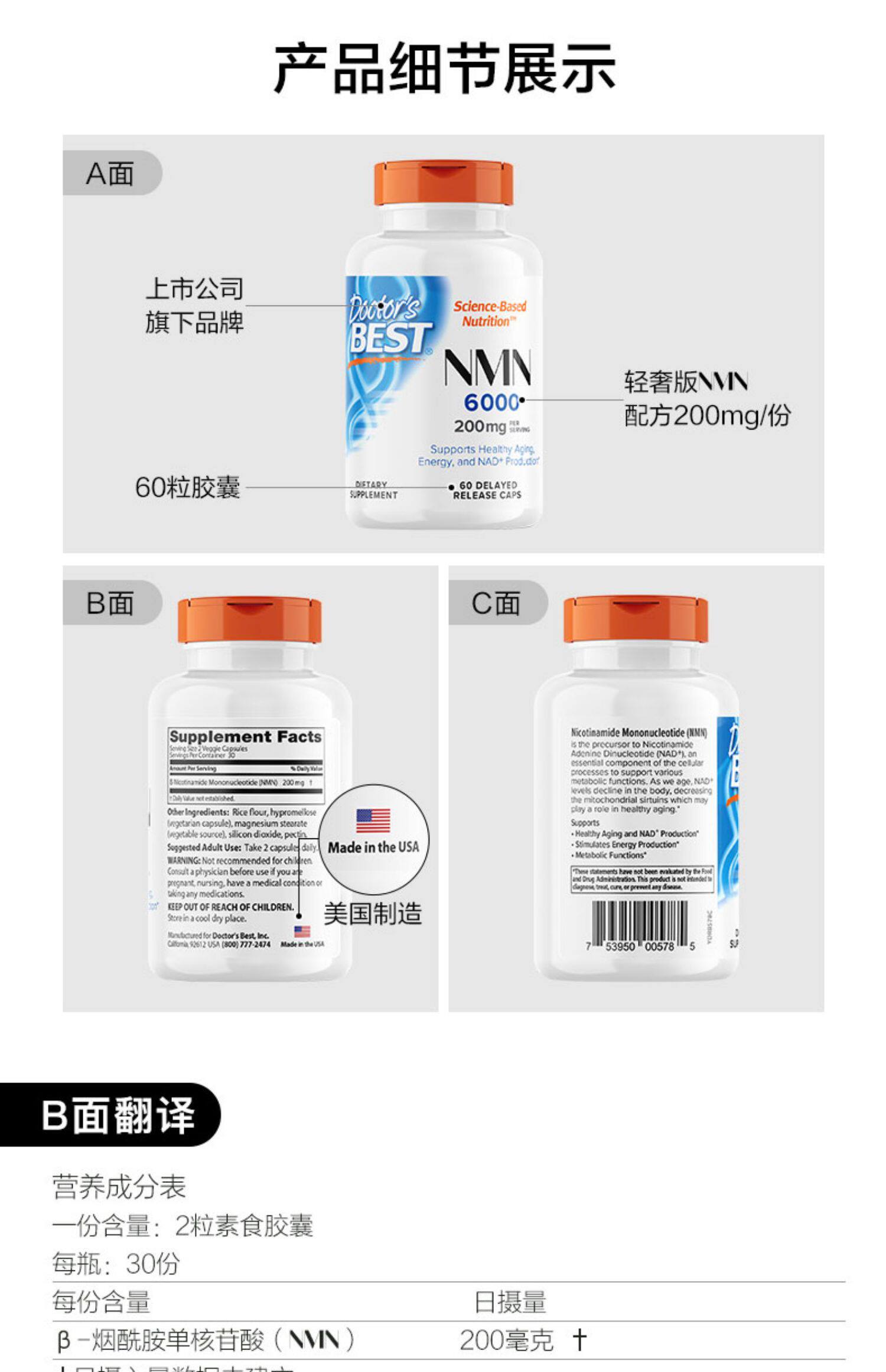 - (Лучшая доктор 6000NMN Формула вегетарианская медленная жесткая капсула жесткая капсула, Golden Dawei Nicotin, US Imported)*3