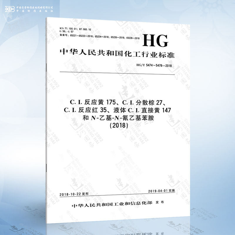 HG/T 5474 ~ 5478-2018 React Yellow 175, C.I. Диверсифицированный коричневый 27, C.I. Реагирование Red 35, жидкость C.I. прямой желтый 147 и N-этил -н Ethyleine (2018)
