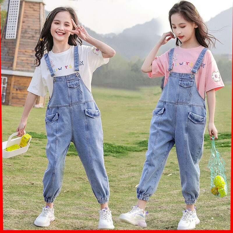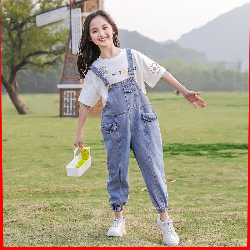 Джинсовая летняя одежда, комбинезон, штаны, повседневные брюки, летний комплект, коллекция 2022, в корейском стиле, в западном стиле