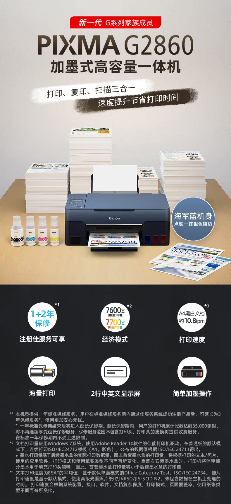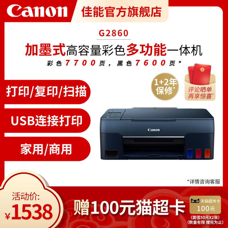 Canon Canon G2860 Цветный принтер дом маленький плюс чернила оригинал, подключенные для копирования всех -один офисный струйный
