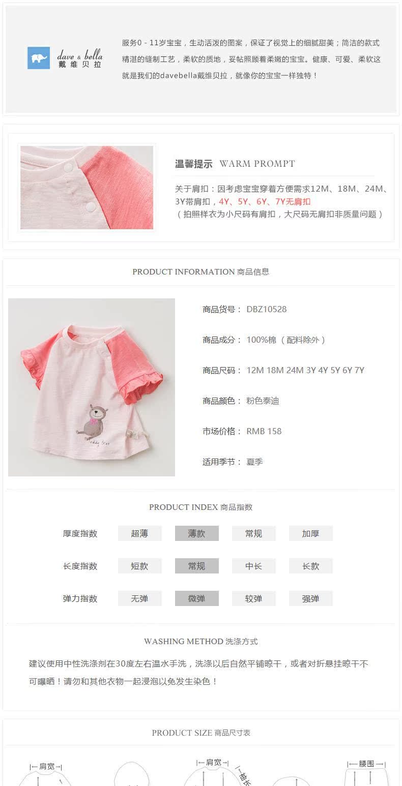 [Дэвид Белла Олат распродажа] Davebella Girls T -Frish T -Form Summer Fiting Baby Short -sleaved Cotton's Kids's Top