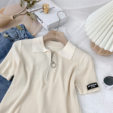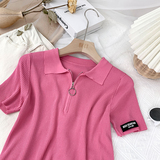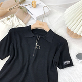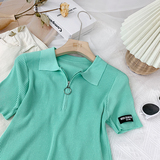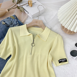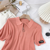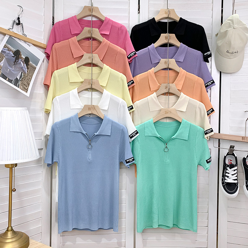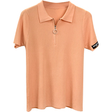 Шелковый трикотажный свитер с молнией, футболка polo, в корейском стиле