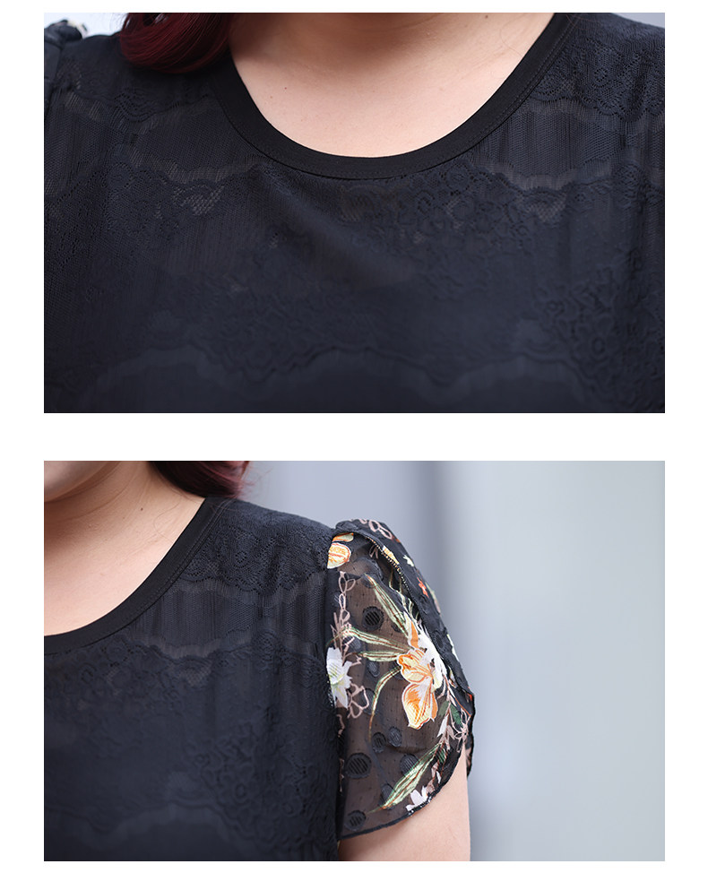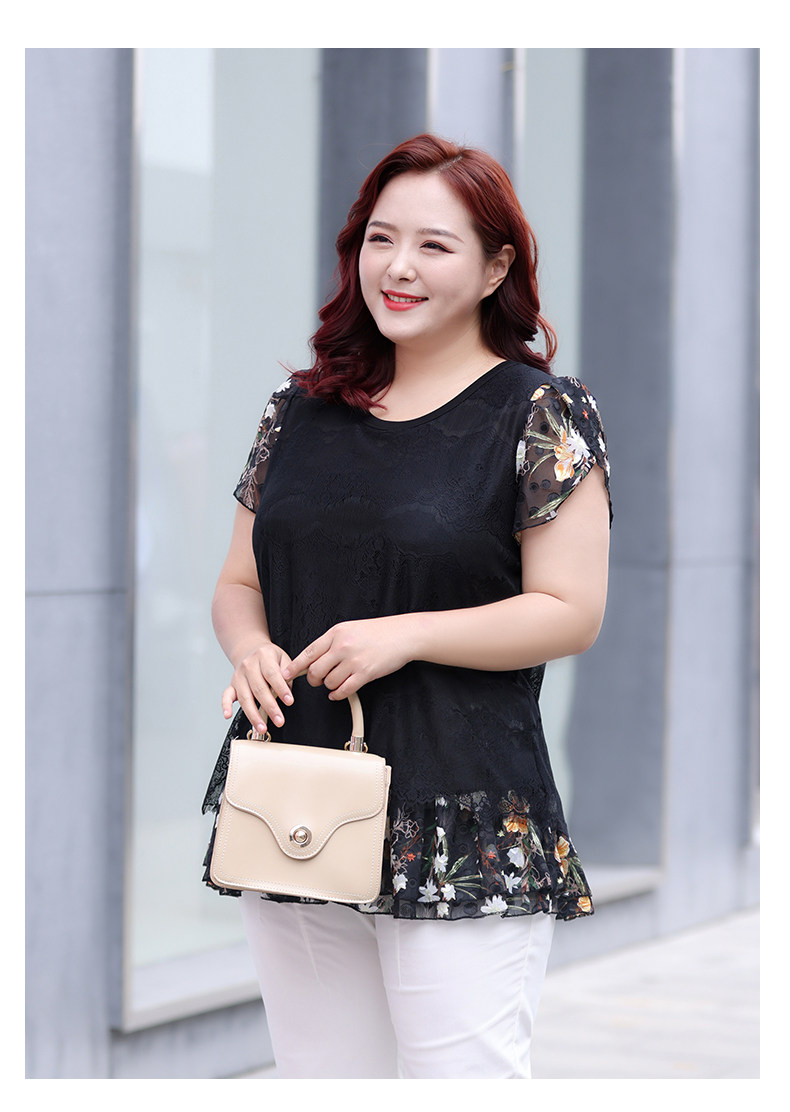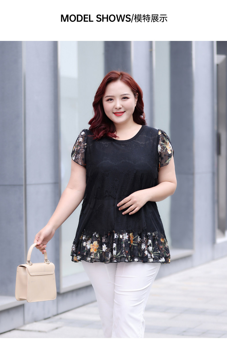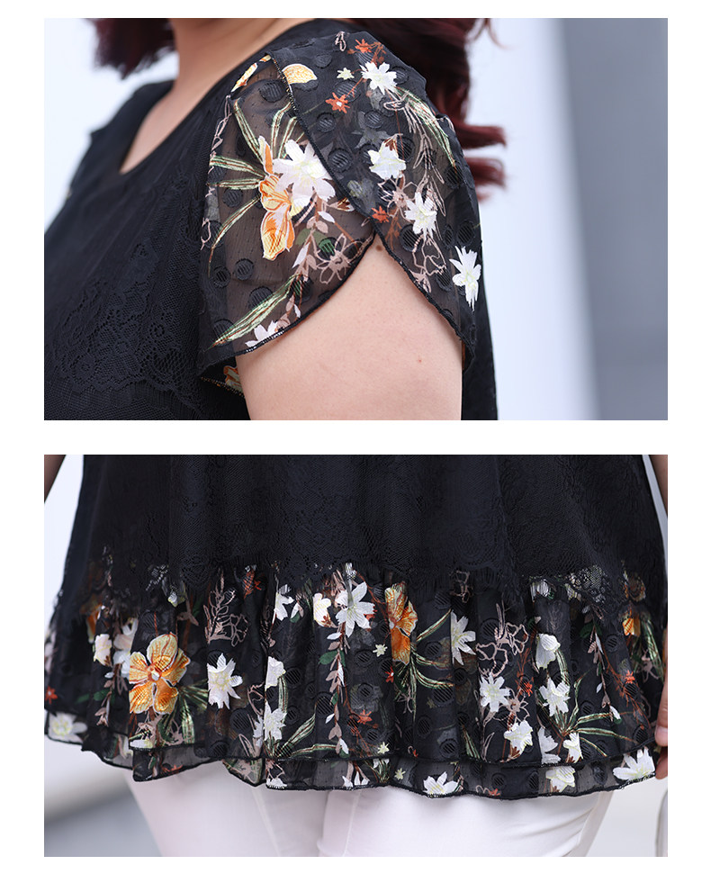 Большой размер, женский летний модный кружевной шифоновый топ в западном стиле для мам среднего возраста, свободный топ с короткими рукавами и топ для похудения