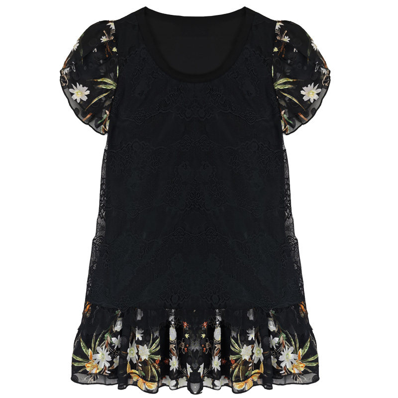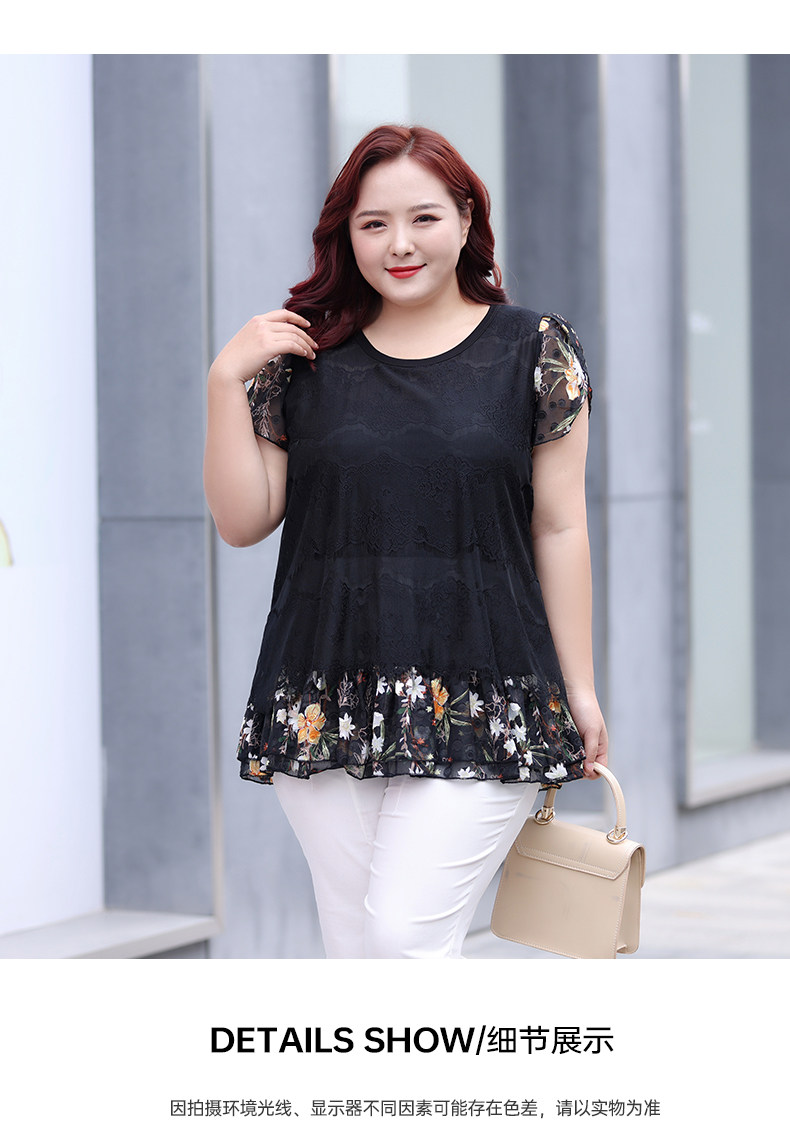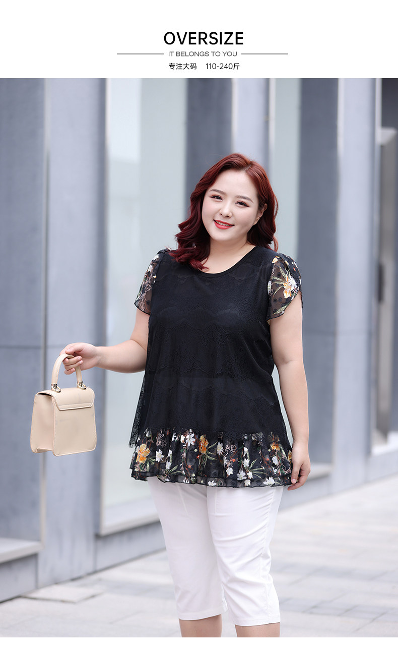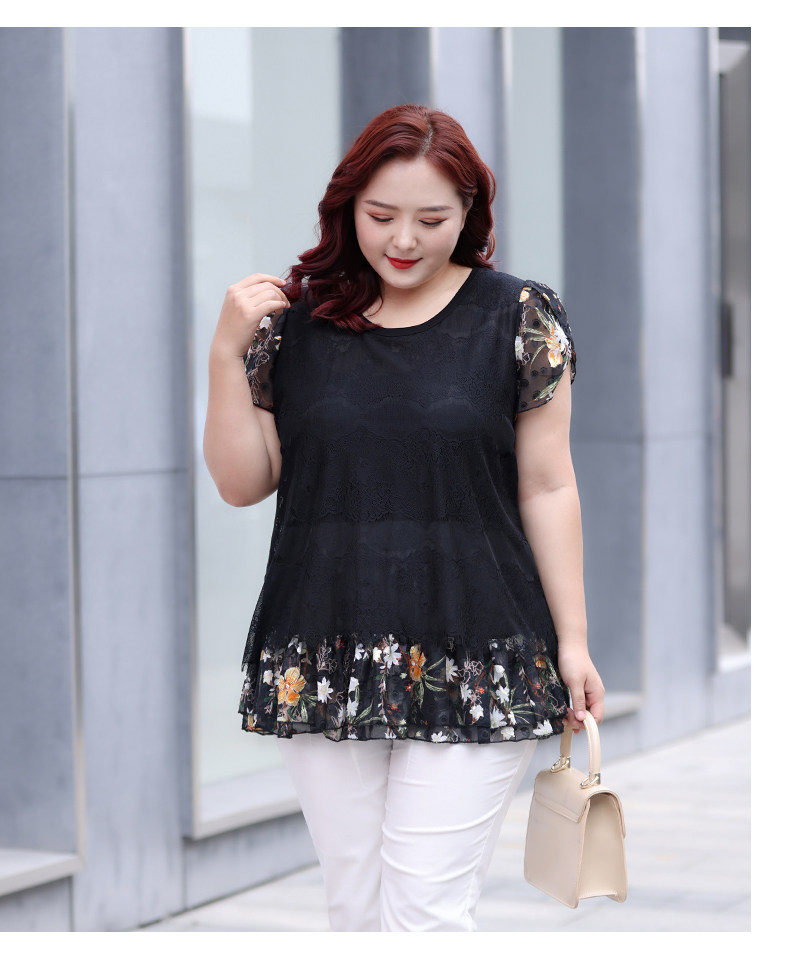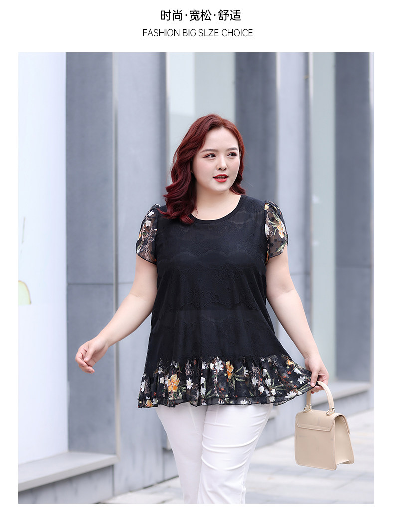 Большой размер, женский летний модный кружевной шифоновый топ в западном стиле для мам среднего возраста, свободный топ с короткими рукавами и топ для похудения