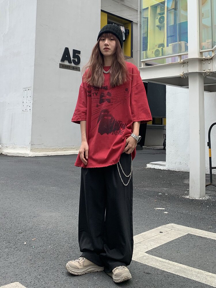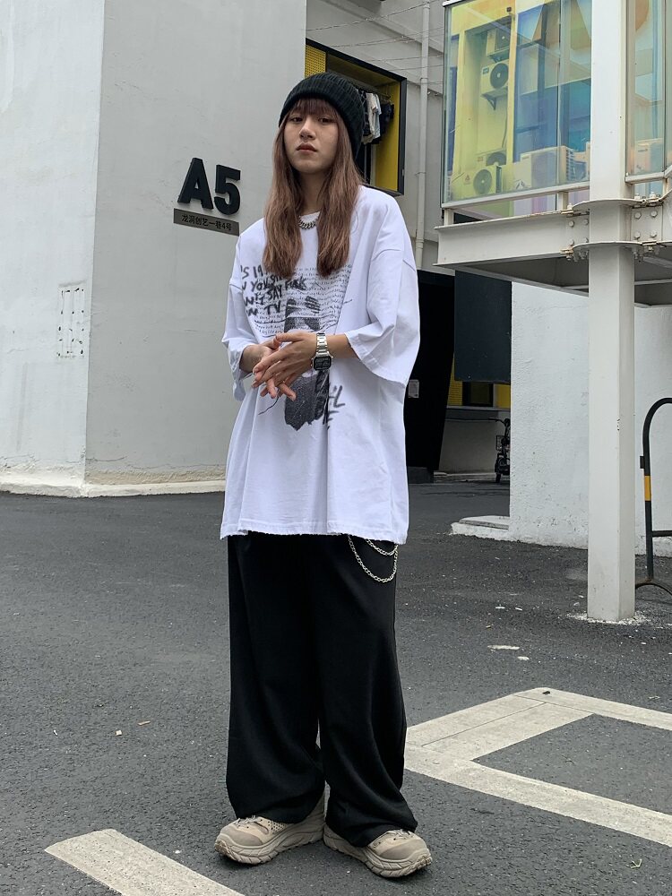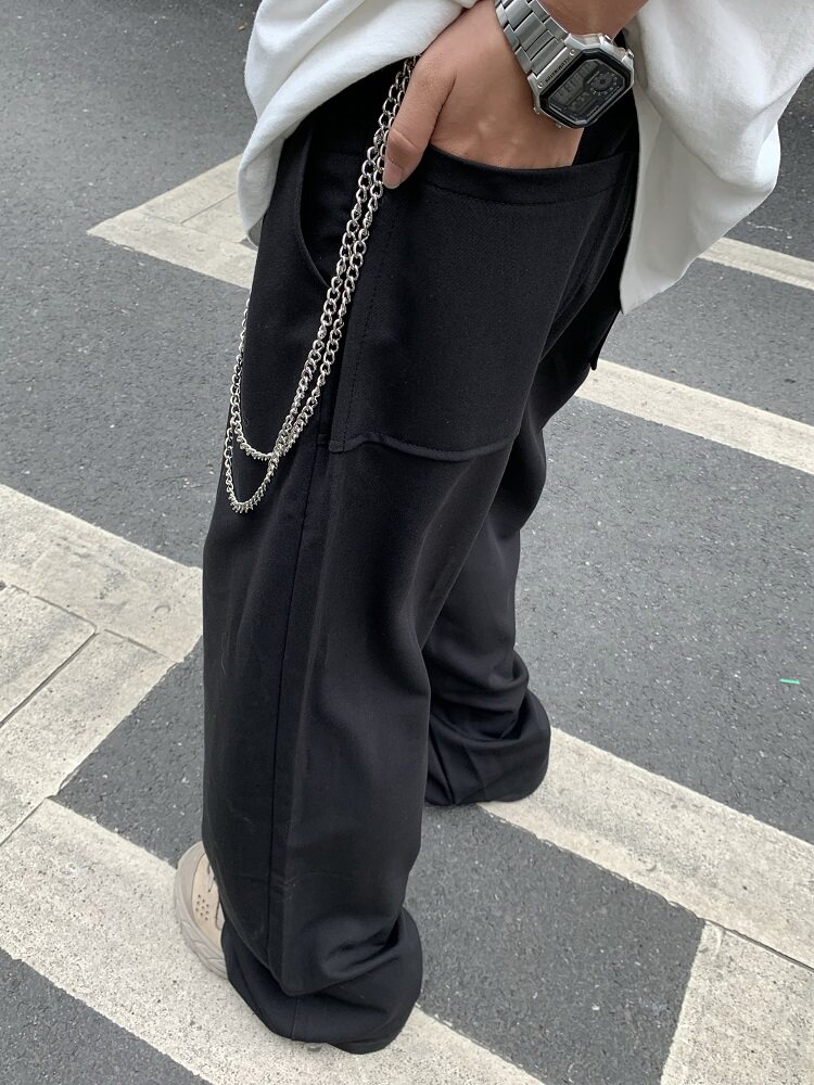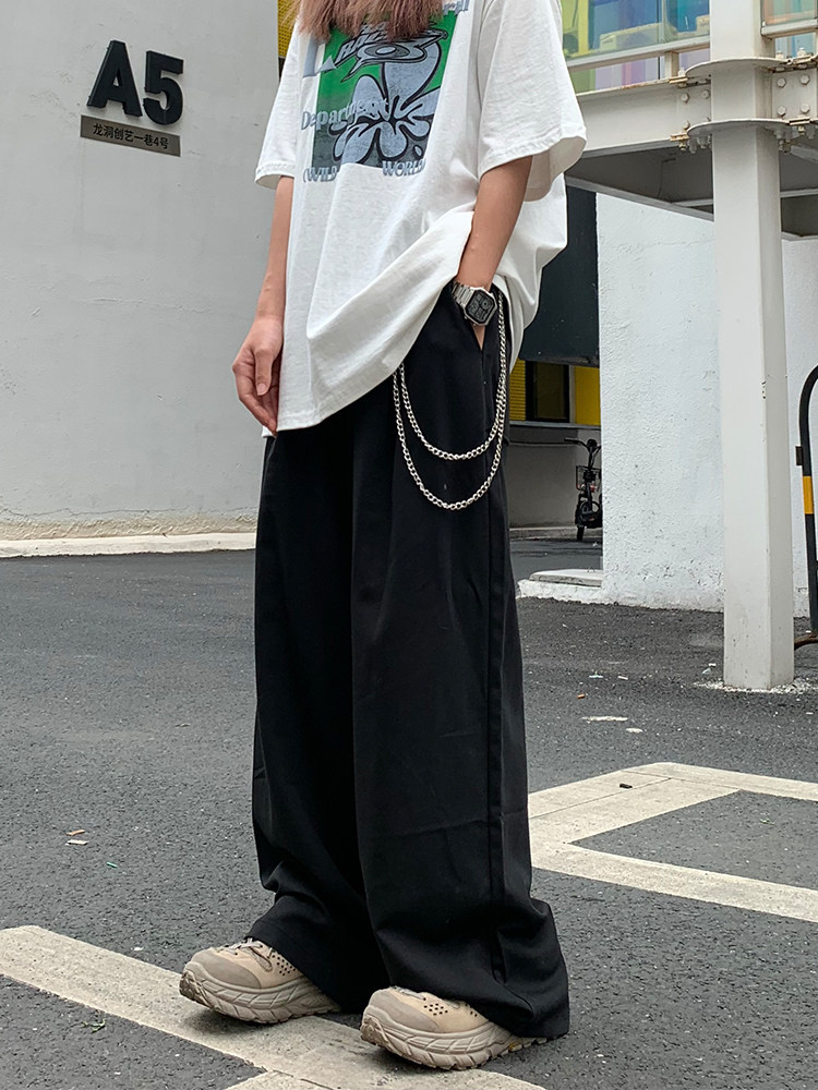 Цепь, костюм, универсальные штаны подходит для мужчин и женщин в стиле хип-хоп, свободный крой, высокая талия