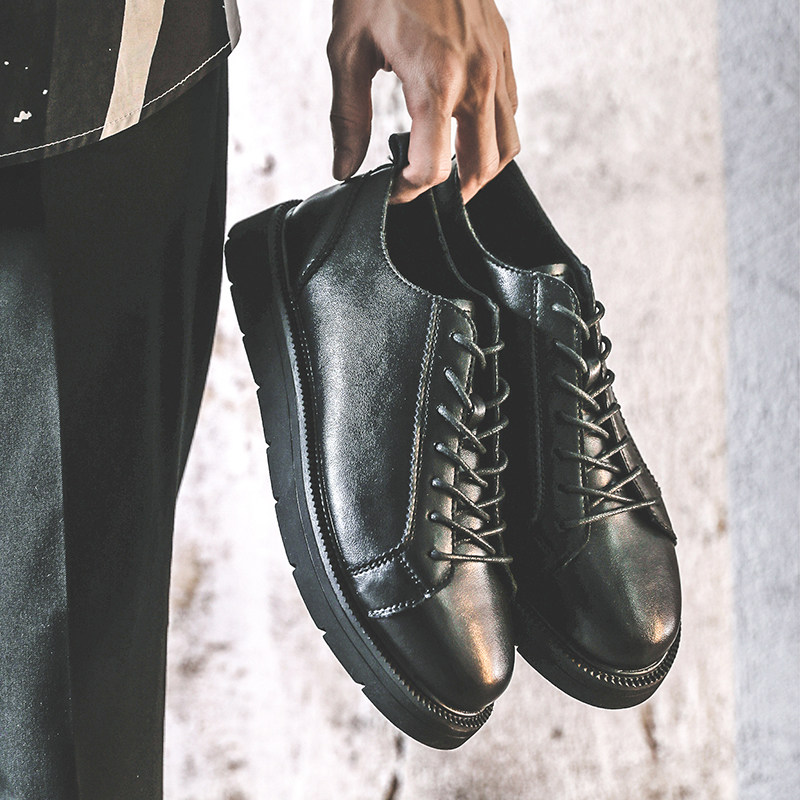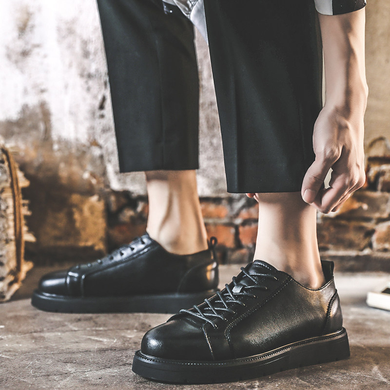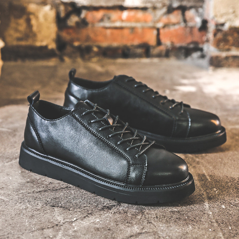 Летняя универсальная повседневная обувь для мужчин, черные модные британские туфли на шнуровке, дышащие кроссовки, молодежная мужская обувь на плоской подошве, небольшие кожаные туфли.