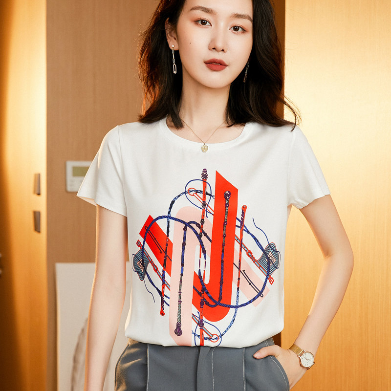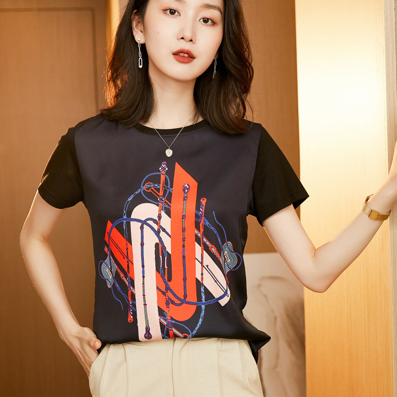 Шелковая летняя футболка, в западном стиле, сезон 2021