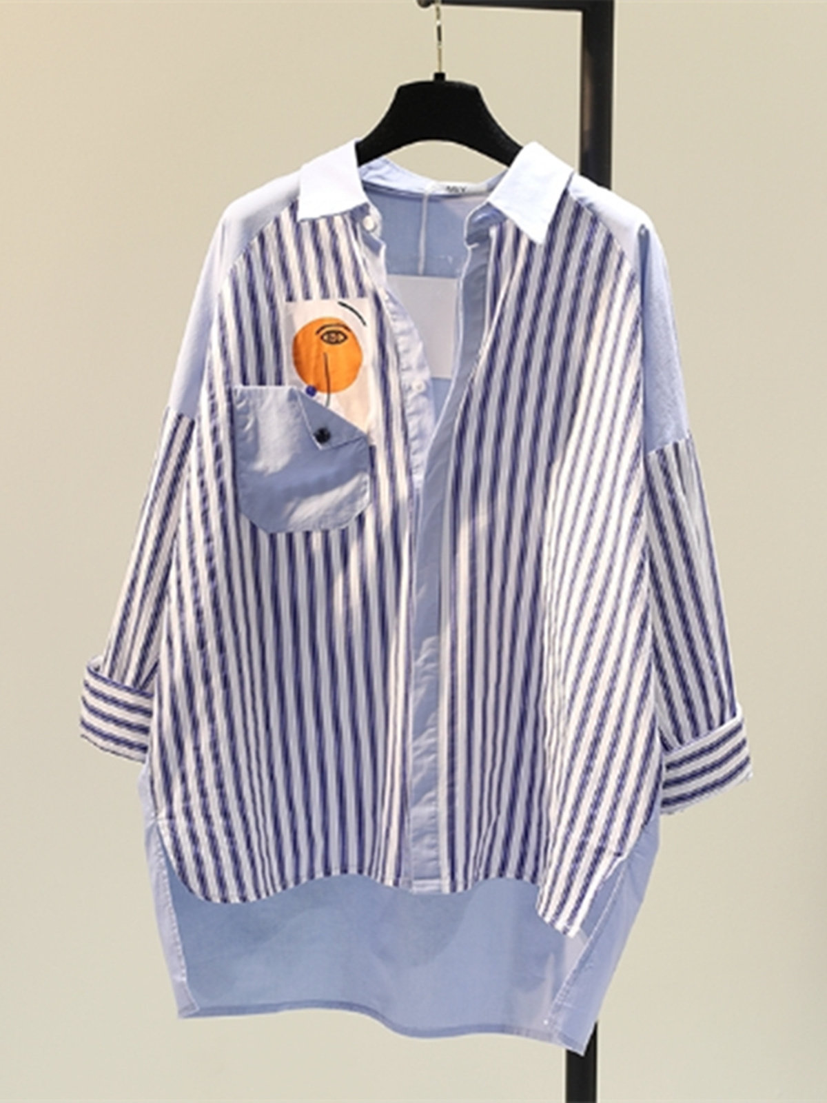 Брендовая синяя осенняя демисезонная рубашка, цвет, свободный крой, длина миди