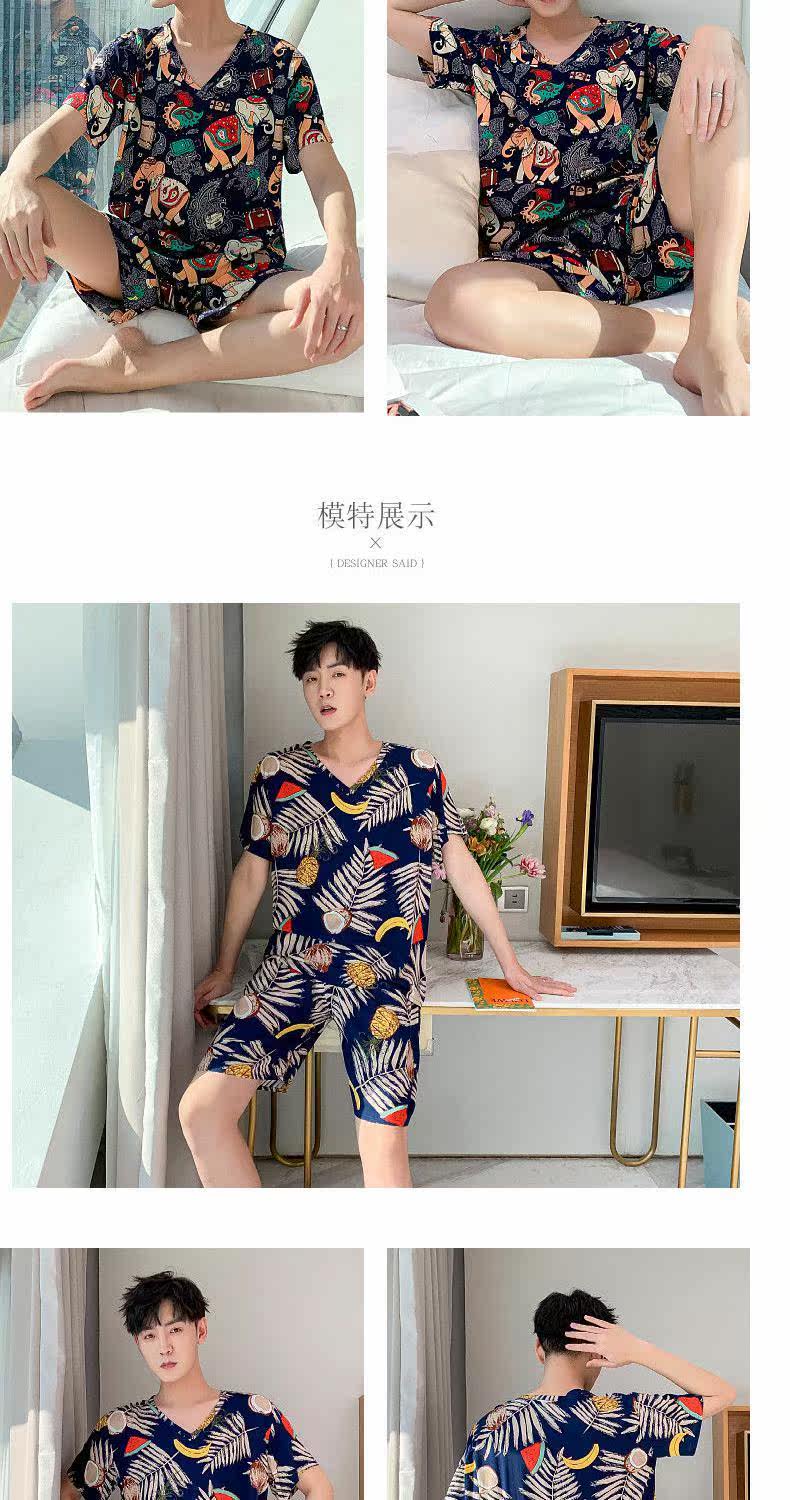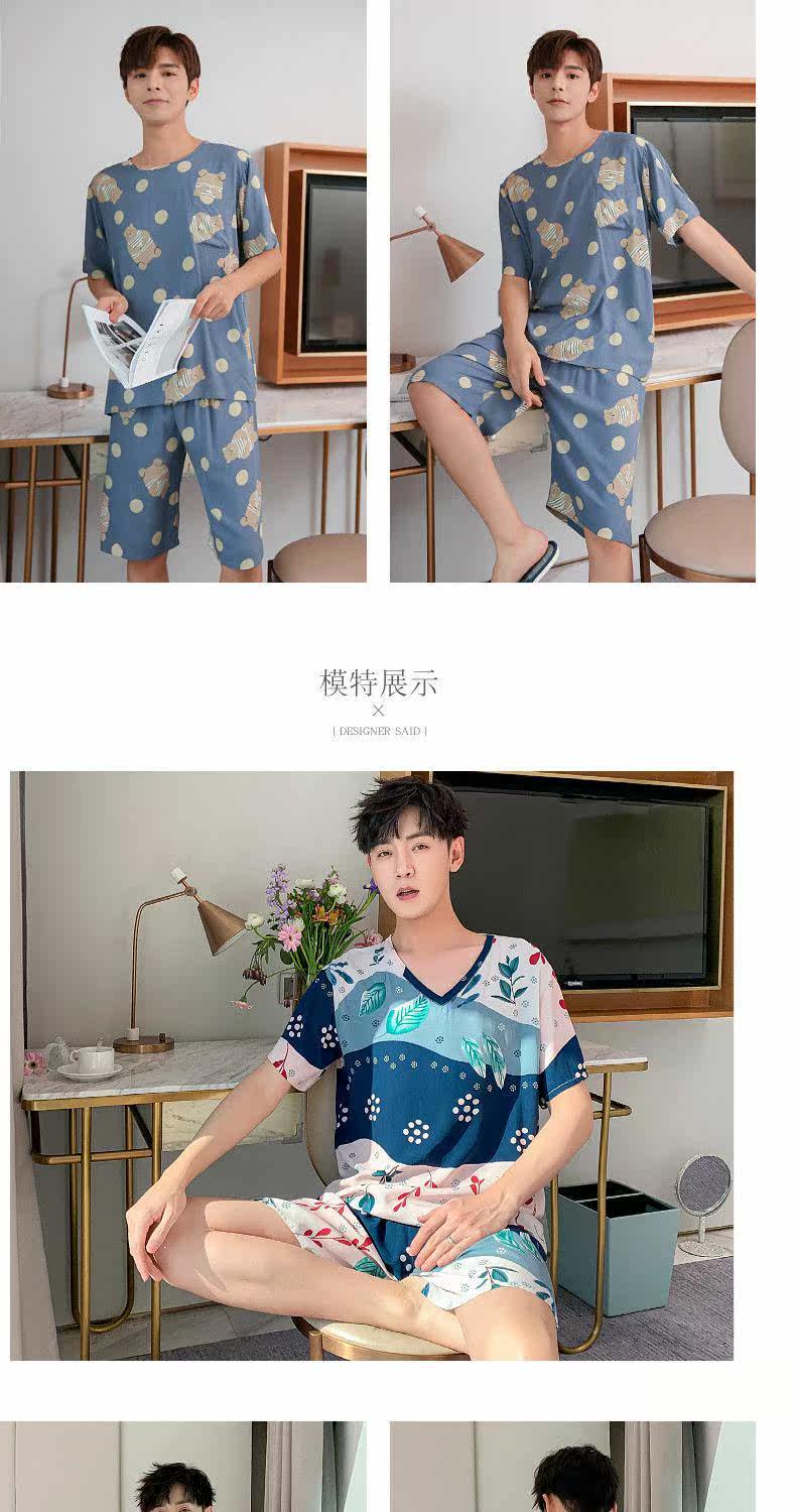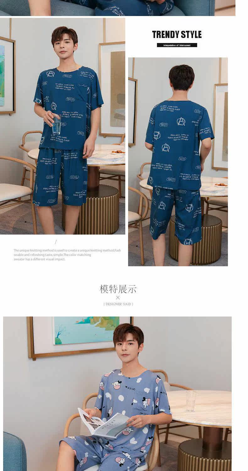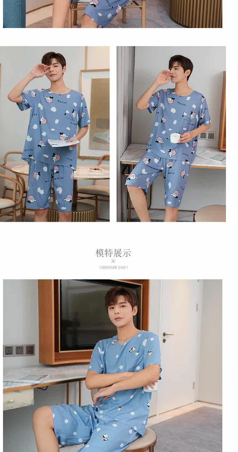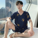 Летняя тонкая пижама, мужские шорты, комплект, короткий рукав, большой размер